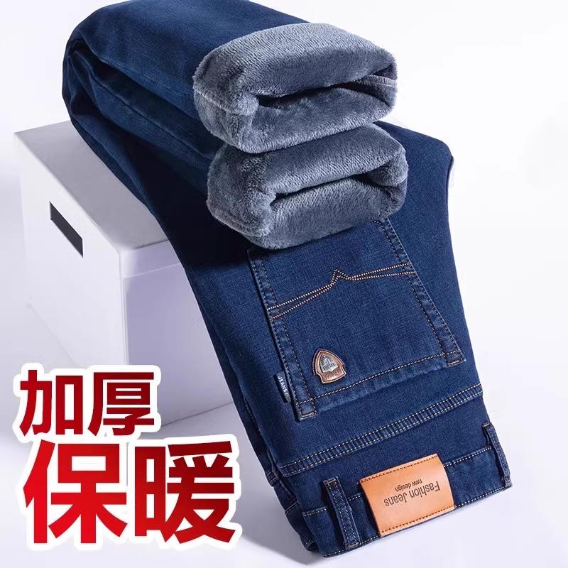 罗蒙加绒加厚牛仔裤男直筒宽松冬季2025新款保暖男士休闲裤子秋冬