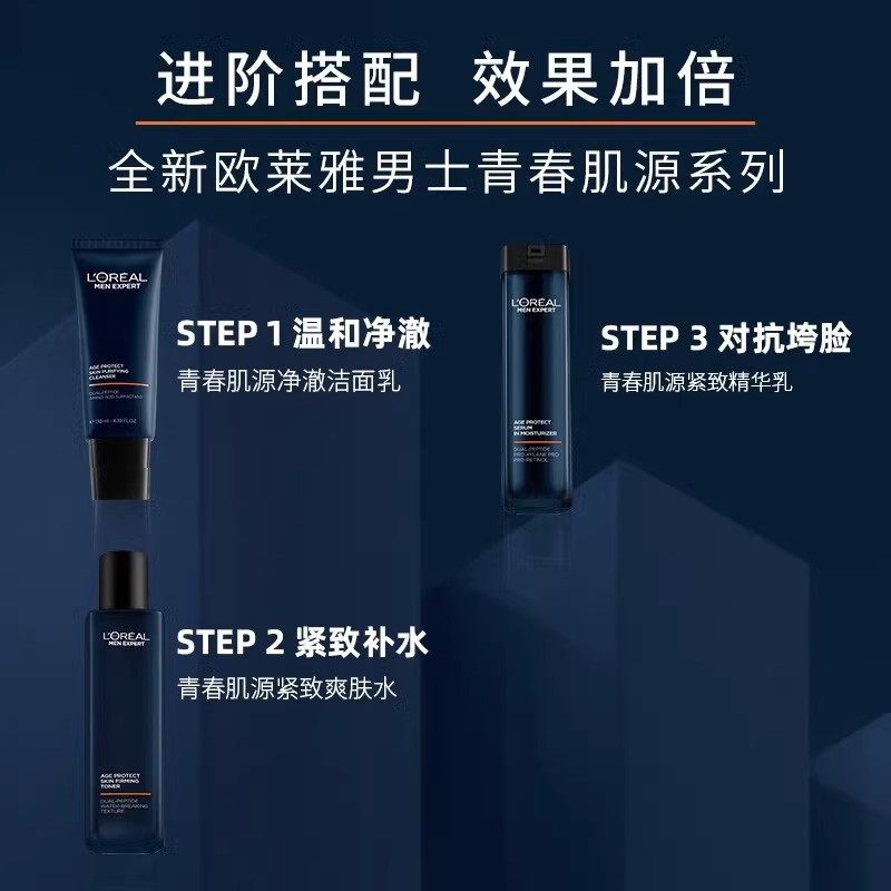 欧莱雅爽肤水男士洁面护肤品套装青春肌源洗面奶水乳套装官方正品