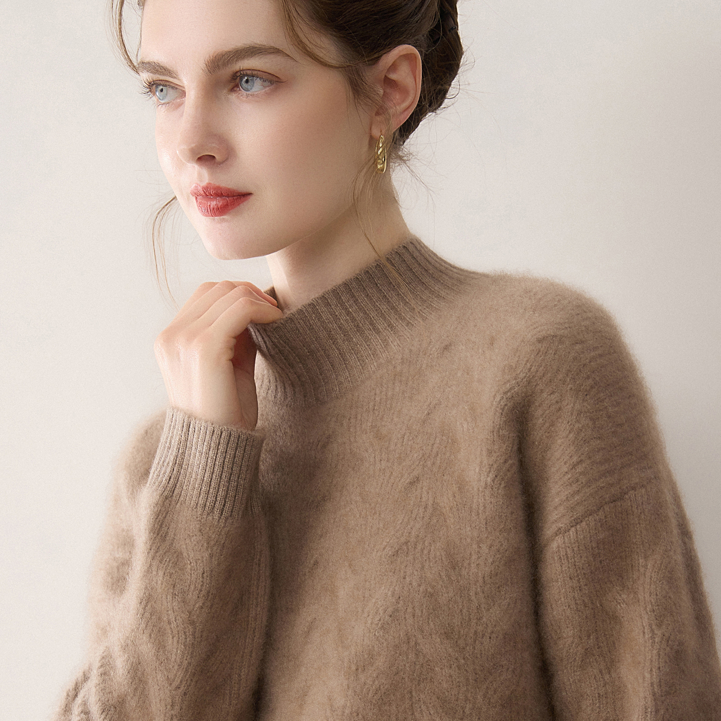 秋冬新款100%纯山羊绒衫女士半高领加厚宽松针织打底百搭毛衣内搭