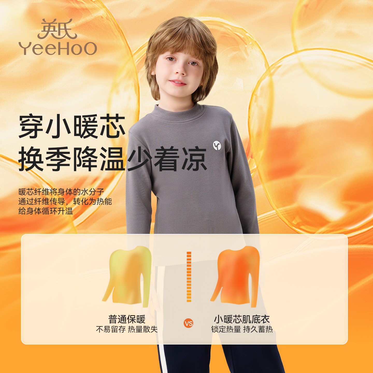 【小暖芯】英氏儿童秋衣男女童保暖上衣加绒加厚中大童长袖打底衫