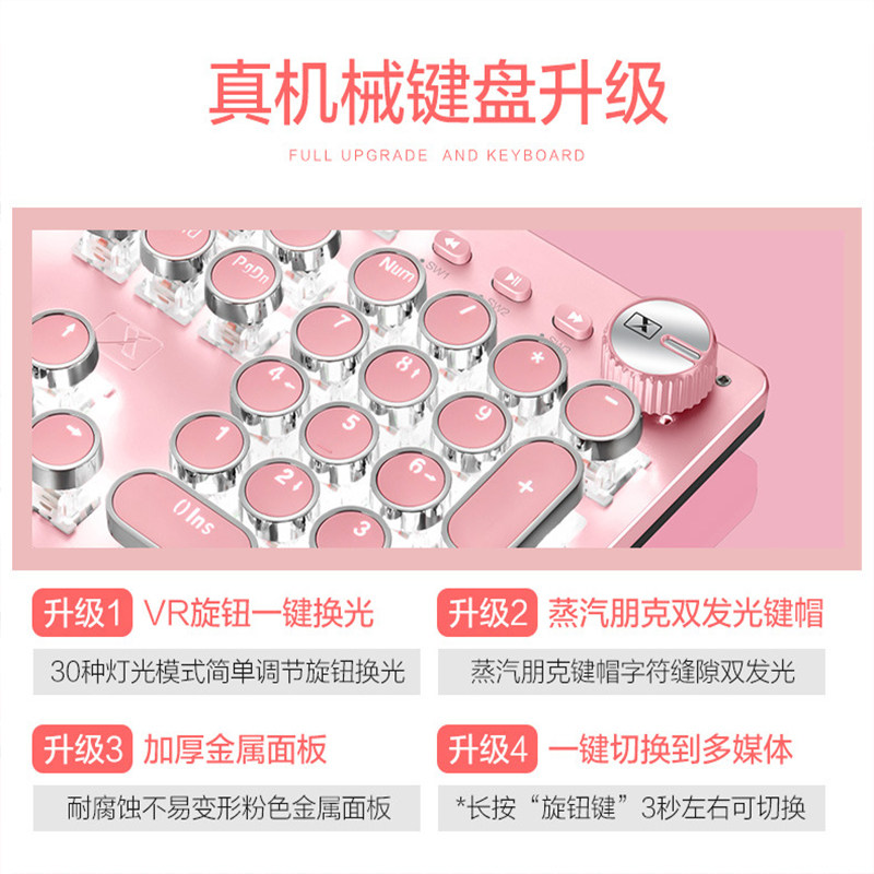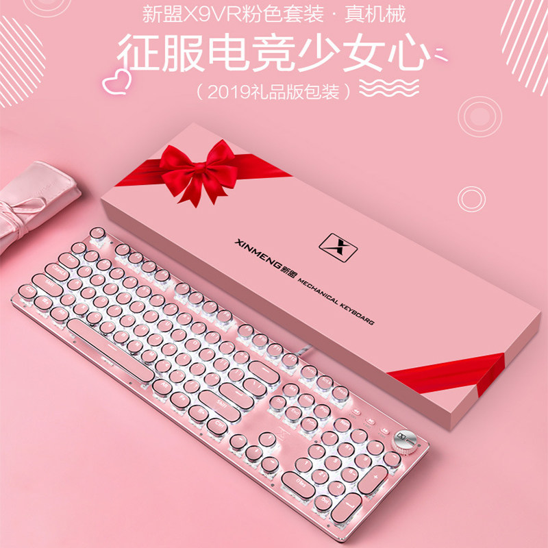 新盟X9真机械键盘朋克鼠标套装少女粉蓝色粉色青轴网吧游戏办公