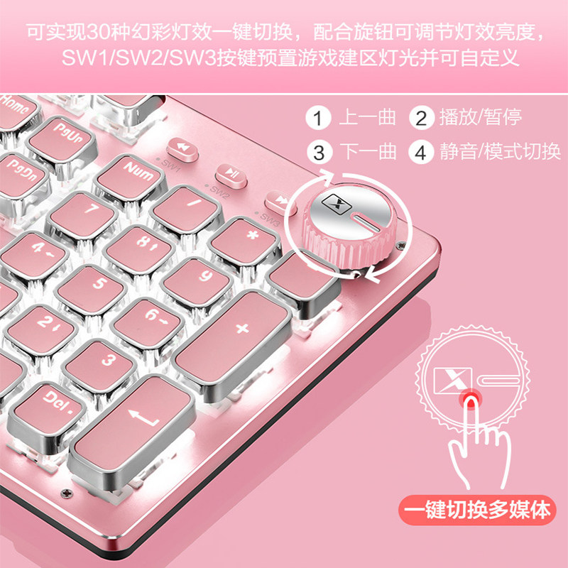 少女粉蓝色网吧网咖真机械键盘