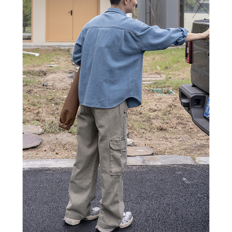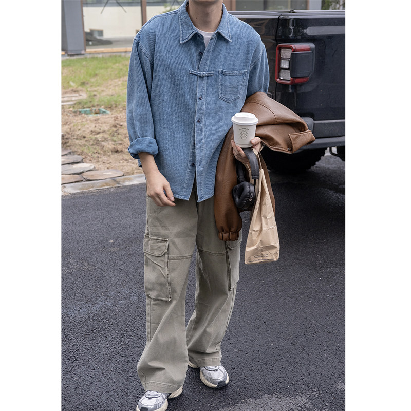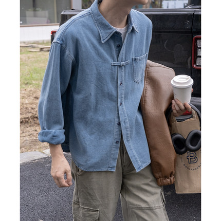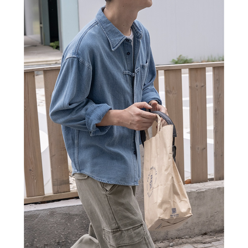 【藏在胸口的一粒扣】几立中式手工盘扣复古水洗提花肌理牛仔衬衫