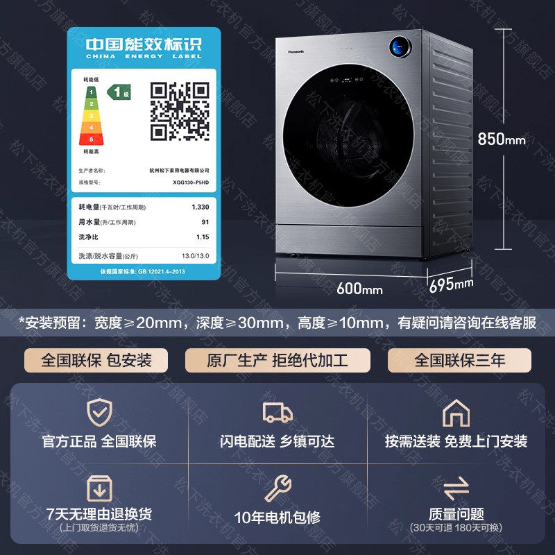新品P5HD松下阿尔法13kg洗烘一体