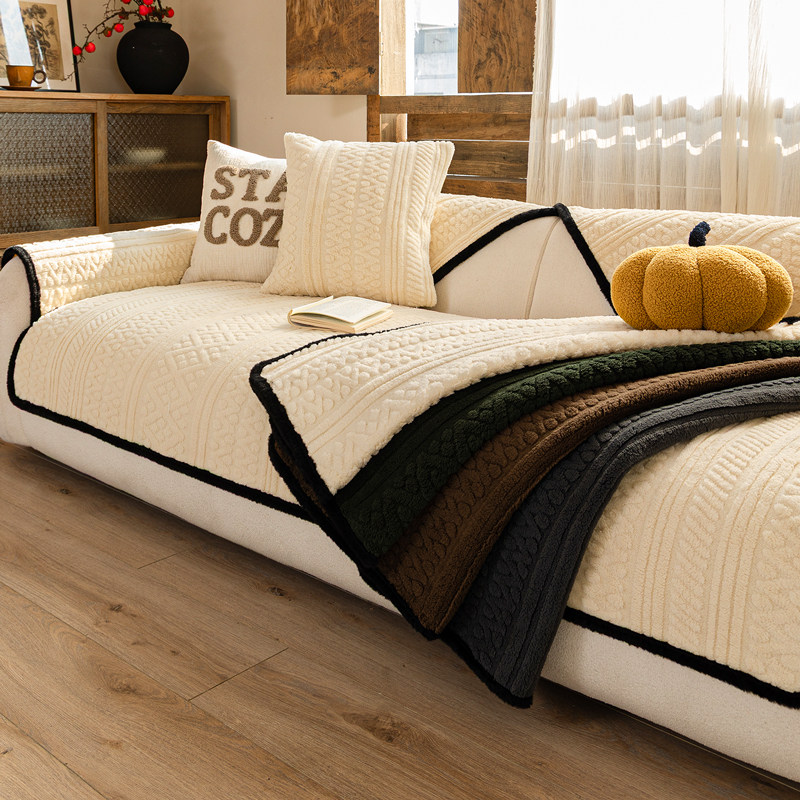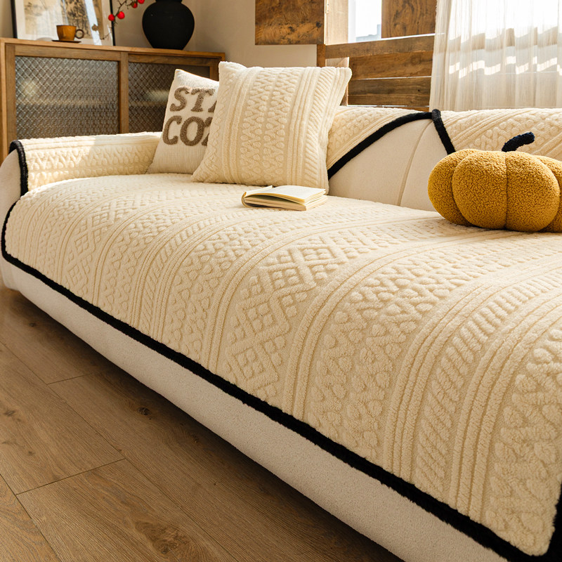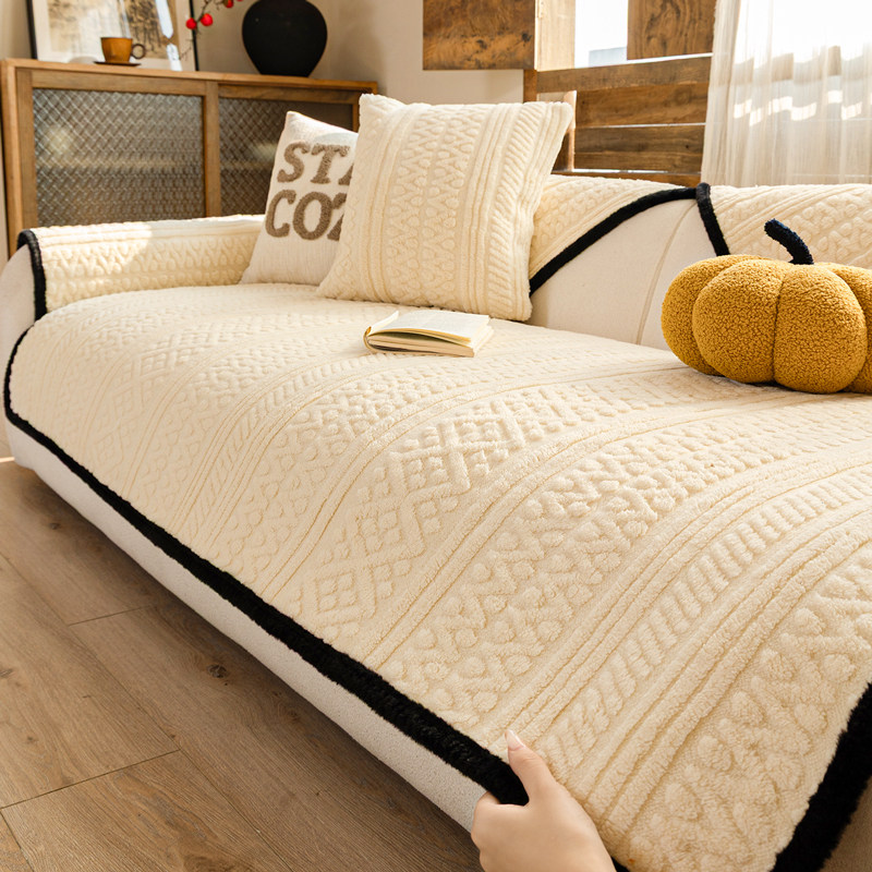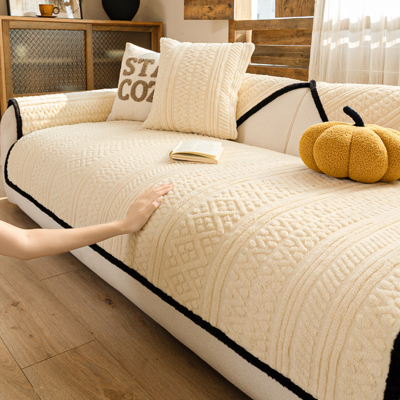 毛绒沙发垫冬季2026新款奶油风直排皮沙发坐垫子固定防滑沙发盖布