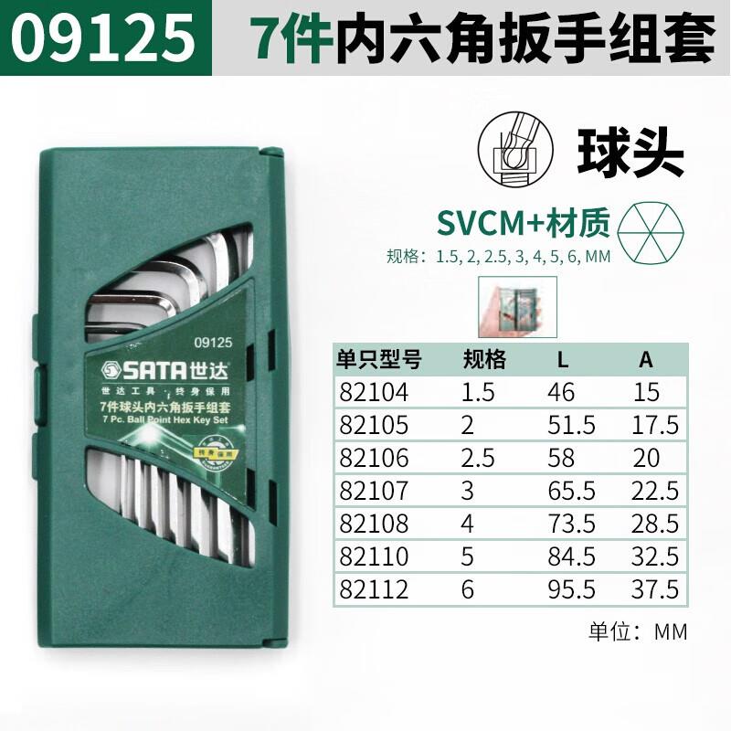 世达(SATA)工具 09125 7件球头内六角扳手组套 09125 7件球头内