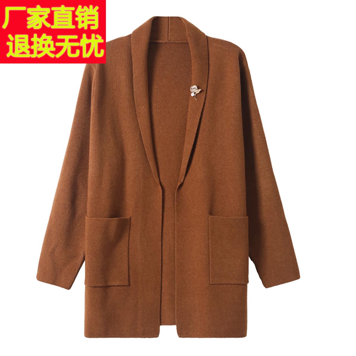 妈妈装中长款针织开衫女2024春秋新款羊毛衫披肩宽松大码外搭毛衣