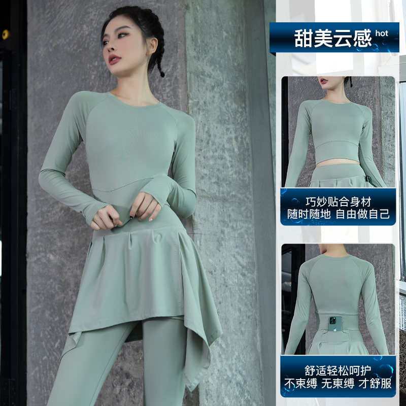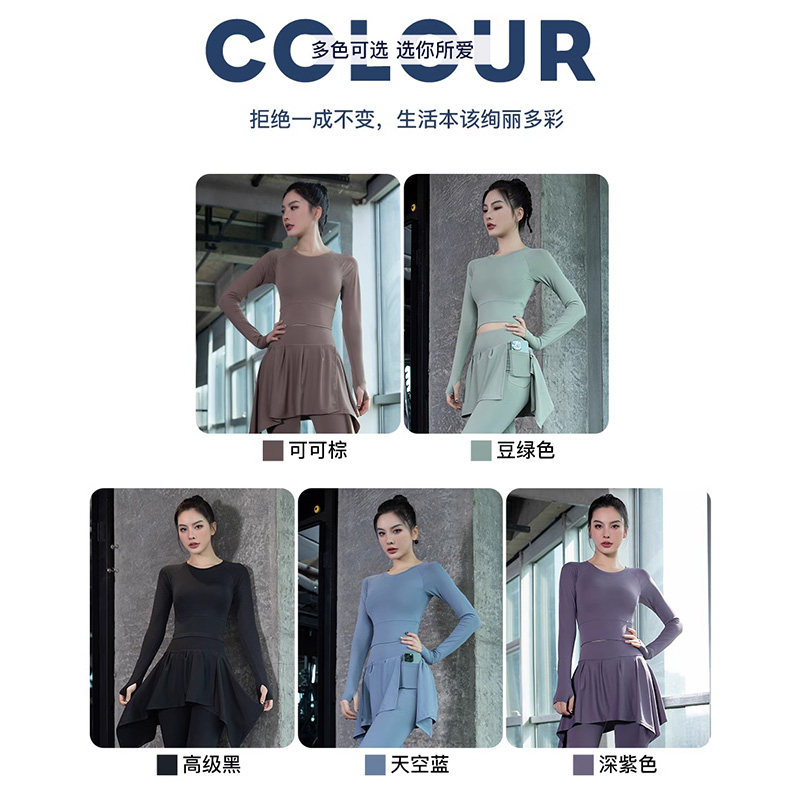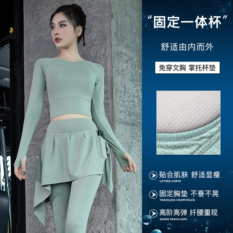 瑜伽服女夏季带胸垫长袖运动速干衣普拉提健身训练服上衣跑步套装