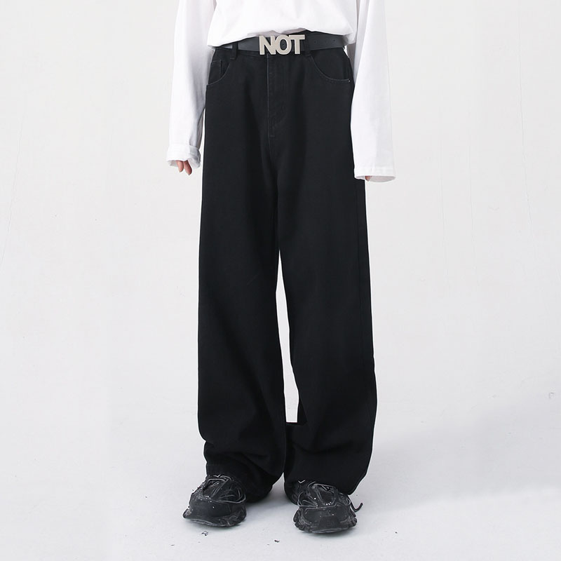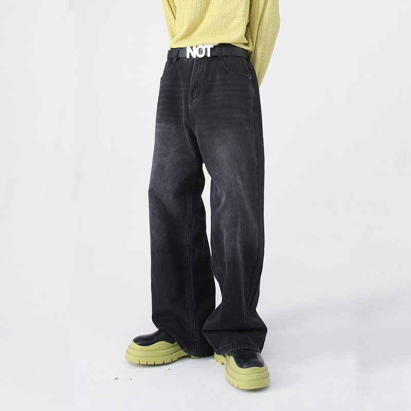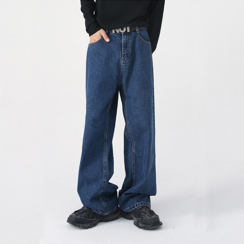 港式四季经典基础款纯色半松紧腰浅色牛仔裤男宽松直筒阔腿裤潮流