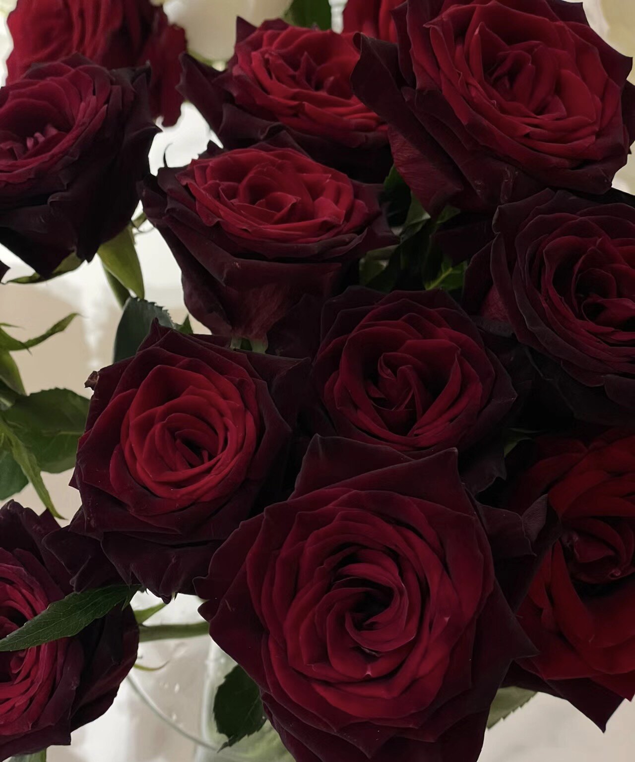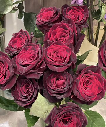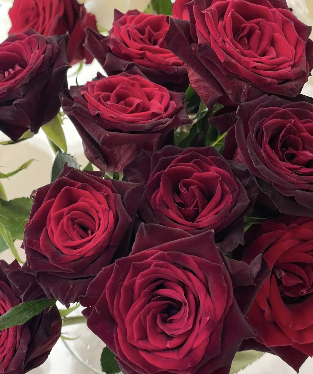超AA级黑巴克黑红色玫瑰切花特大鲜切花国外引进种植高端玫瑰