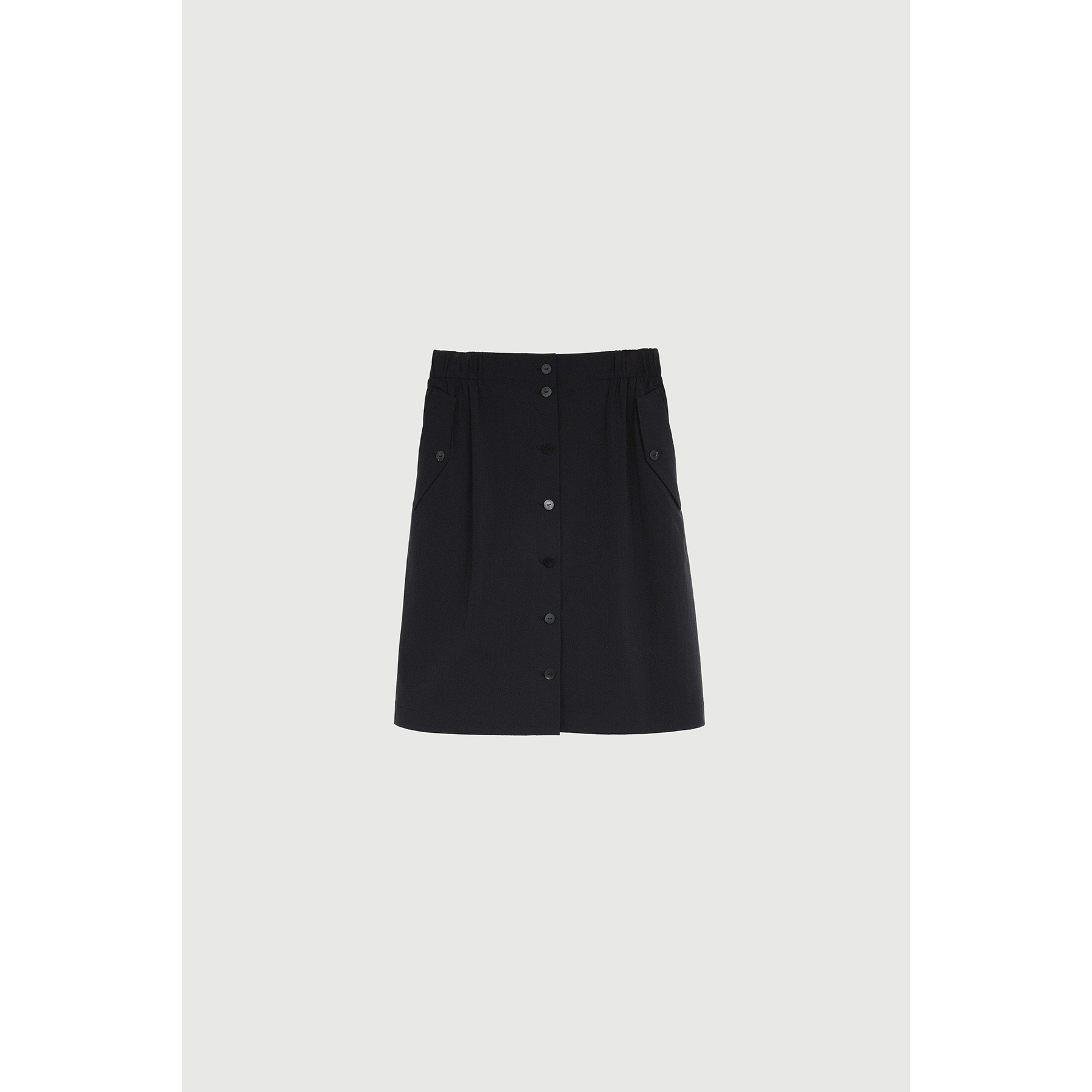 黑色尼龙松紧腰前扣半身裙 WOODEN SHIP