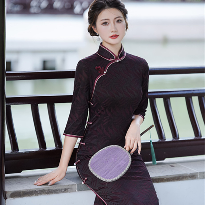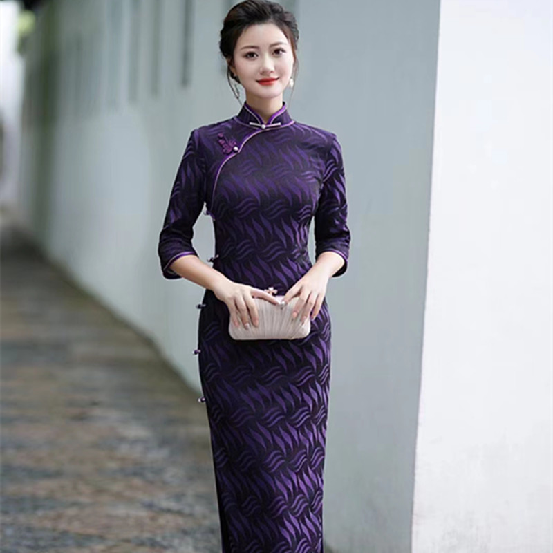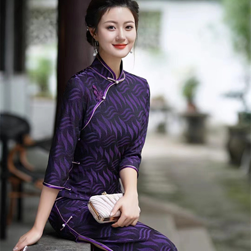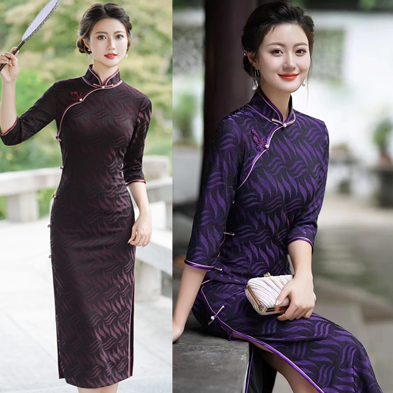 2023改良复古民国风气质高端老上海性感优雅显瘦中袖长款大码旗袍