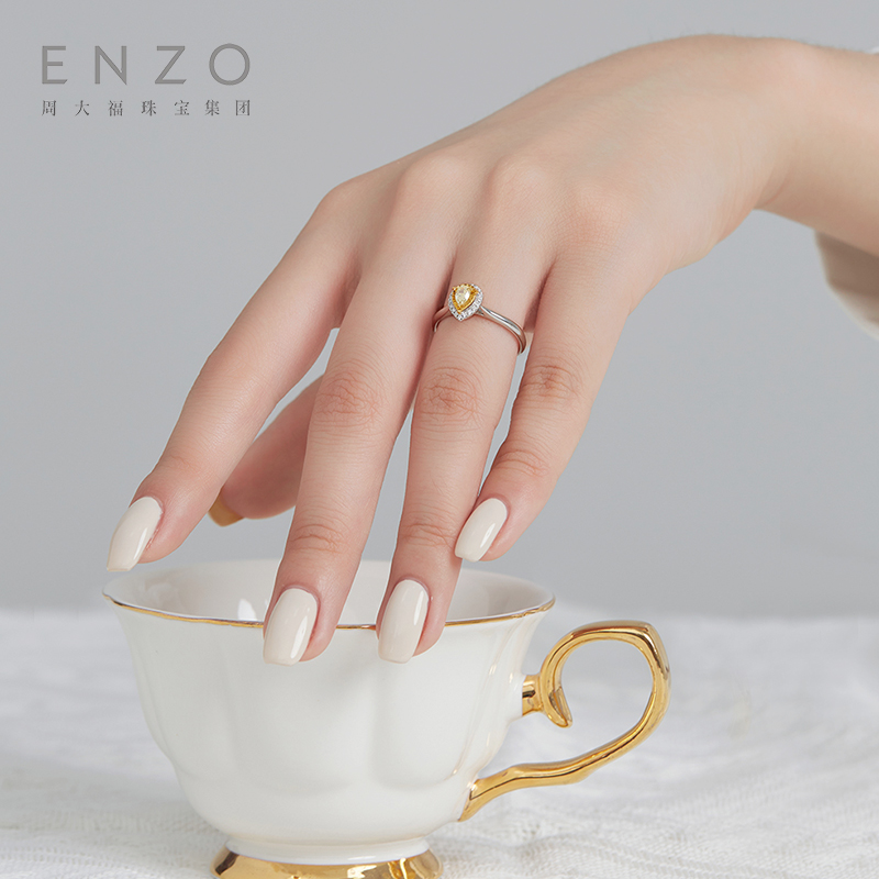 ENZO「商场同款」18K金镶水滴形黄钻钻石戒指女EZU2584