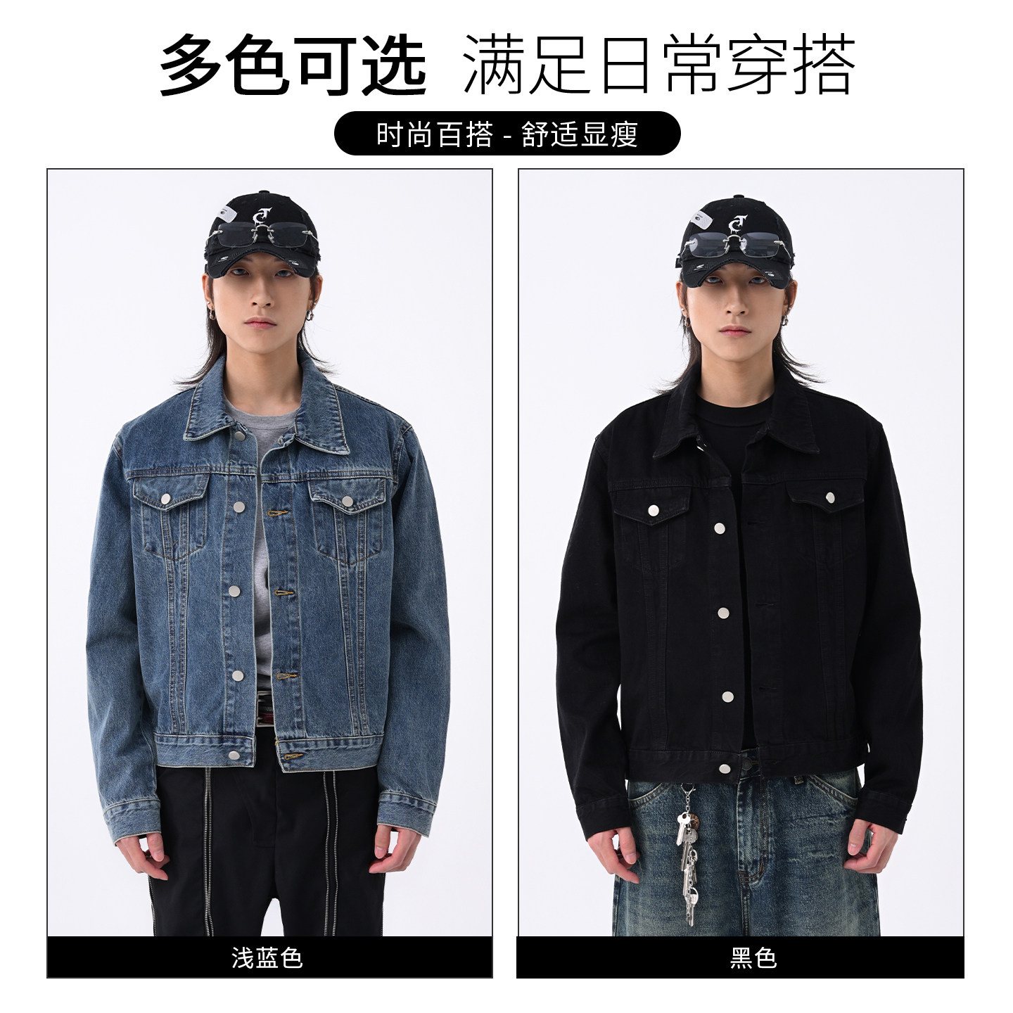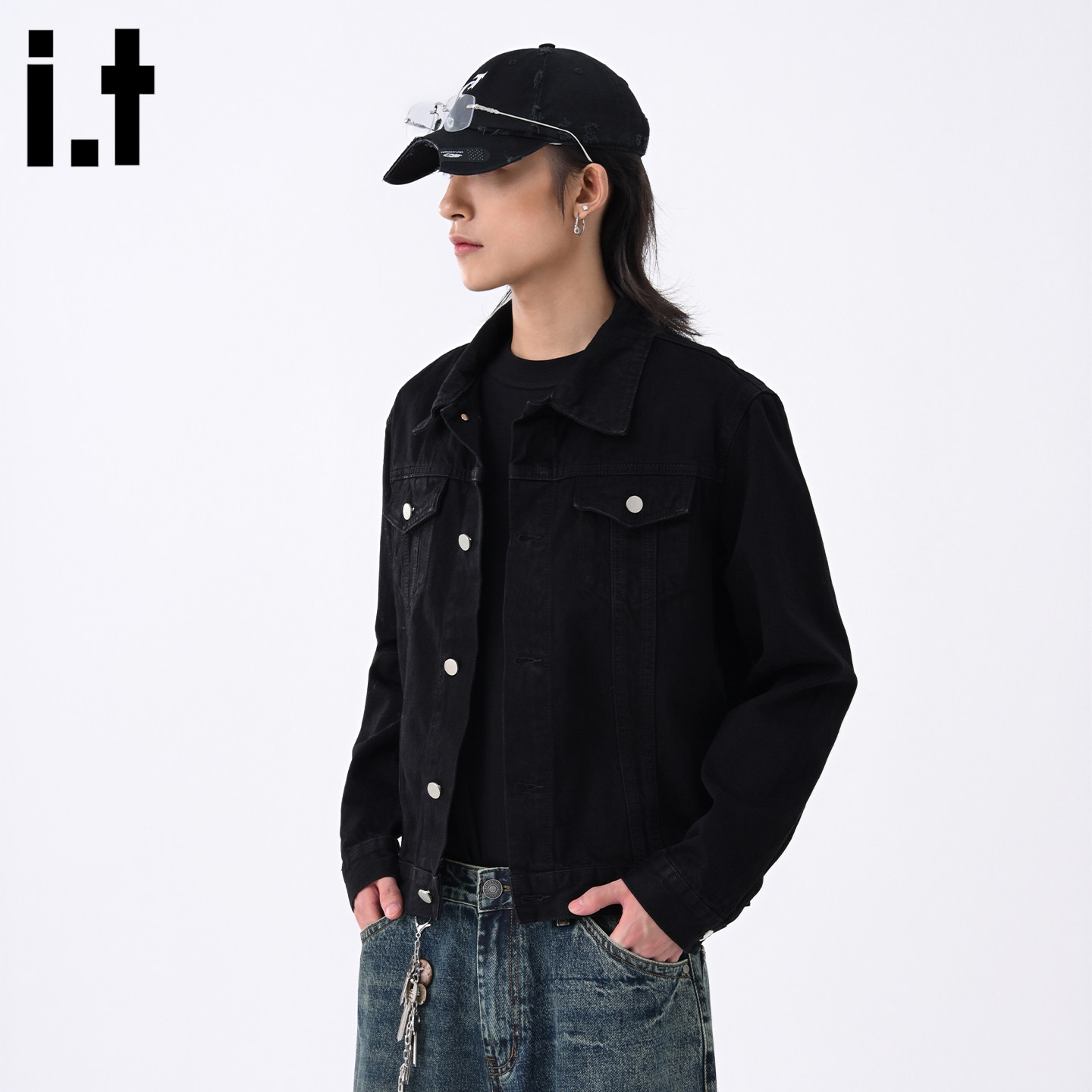 it :5cm/FIVECM黑色时尚短款工装牛仔外套男款2025新款秋夹克上衣