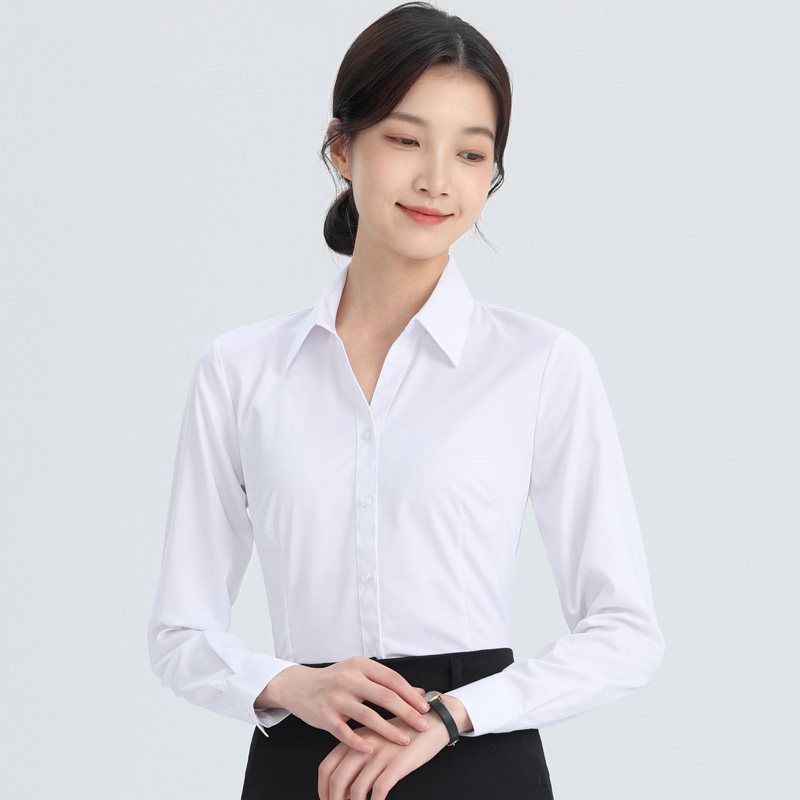 白衬衫女士职业正装2025新款V领内搭长袖学生面试莫代尔修身短袖