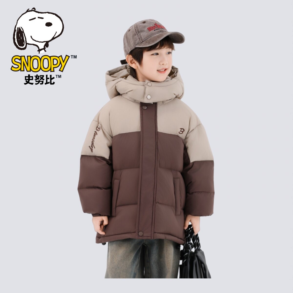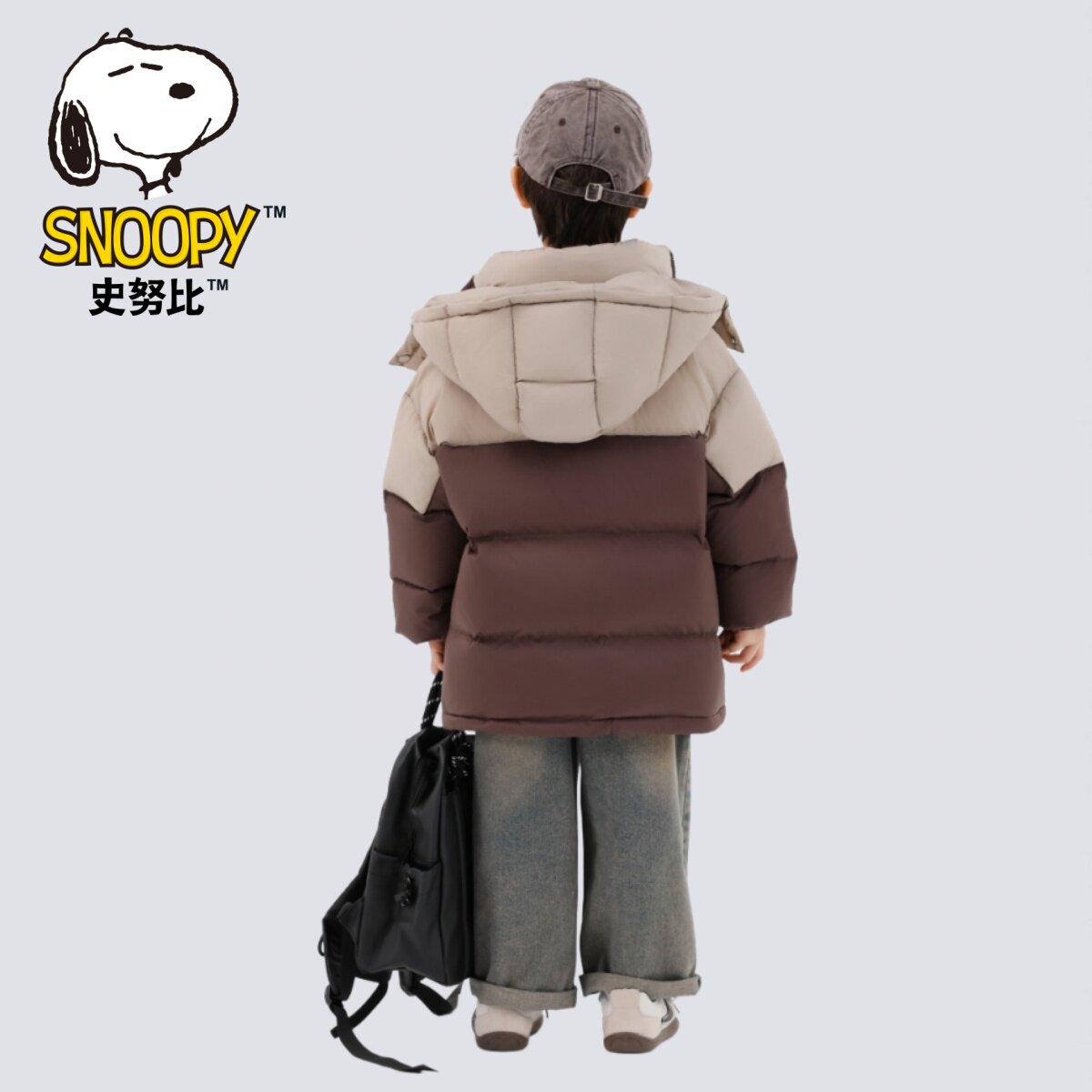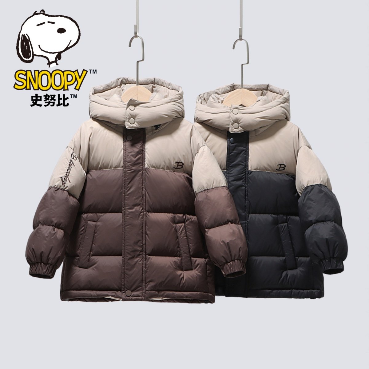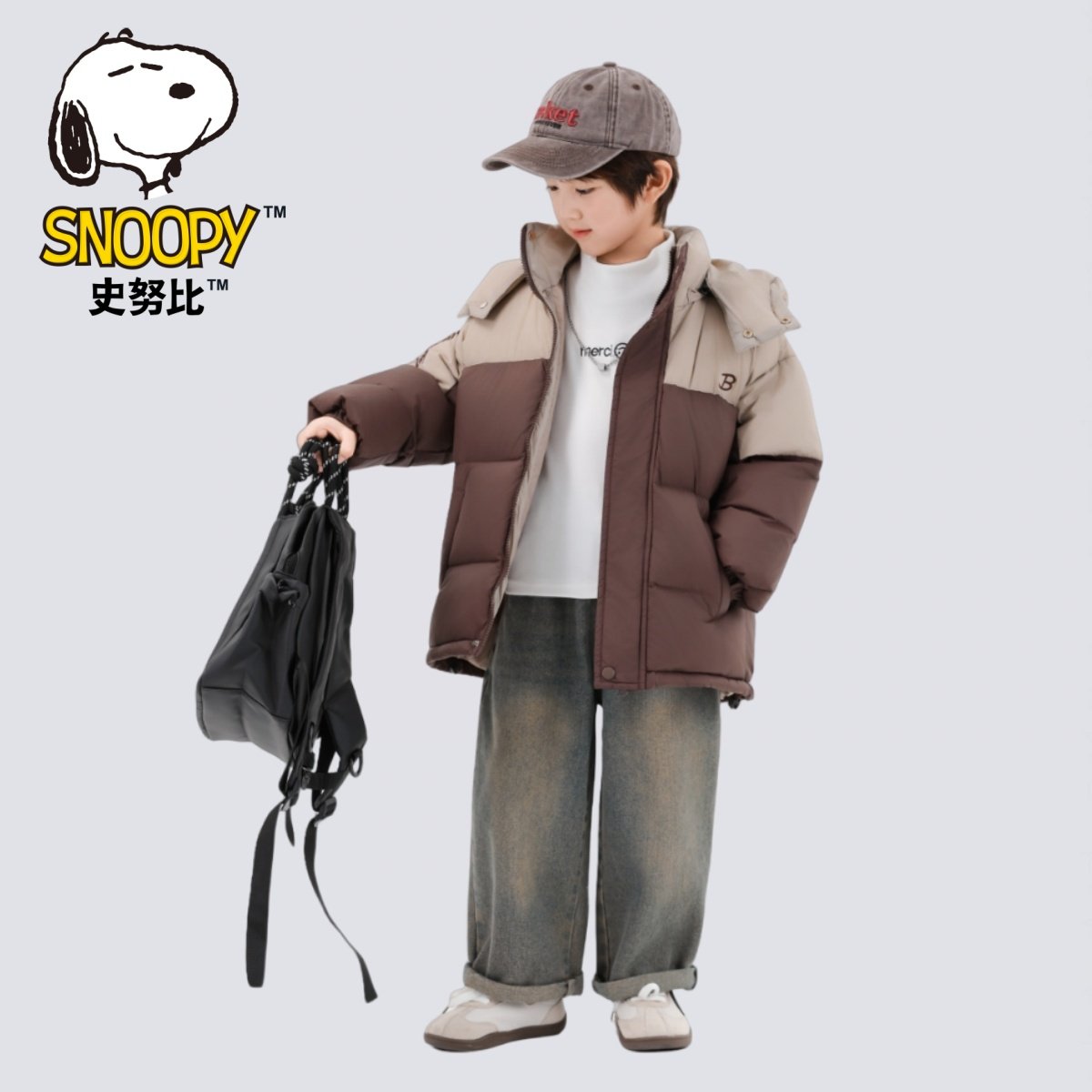 史努比男童羽绒服2025新款冬季拼色加厚90白鸭绒儿童装短款外套潮