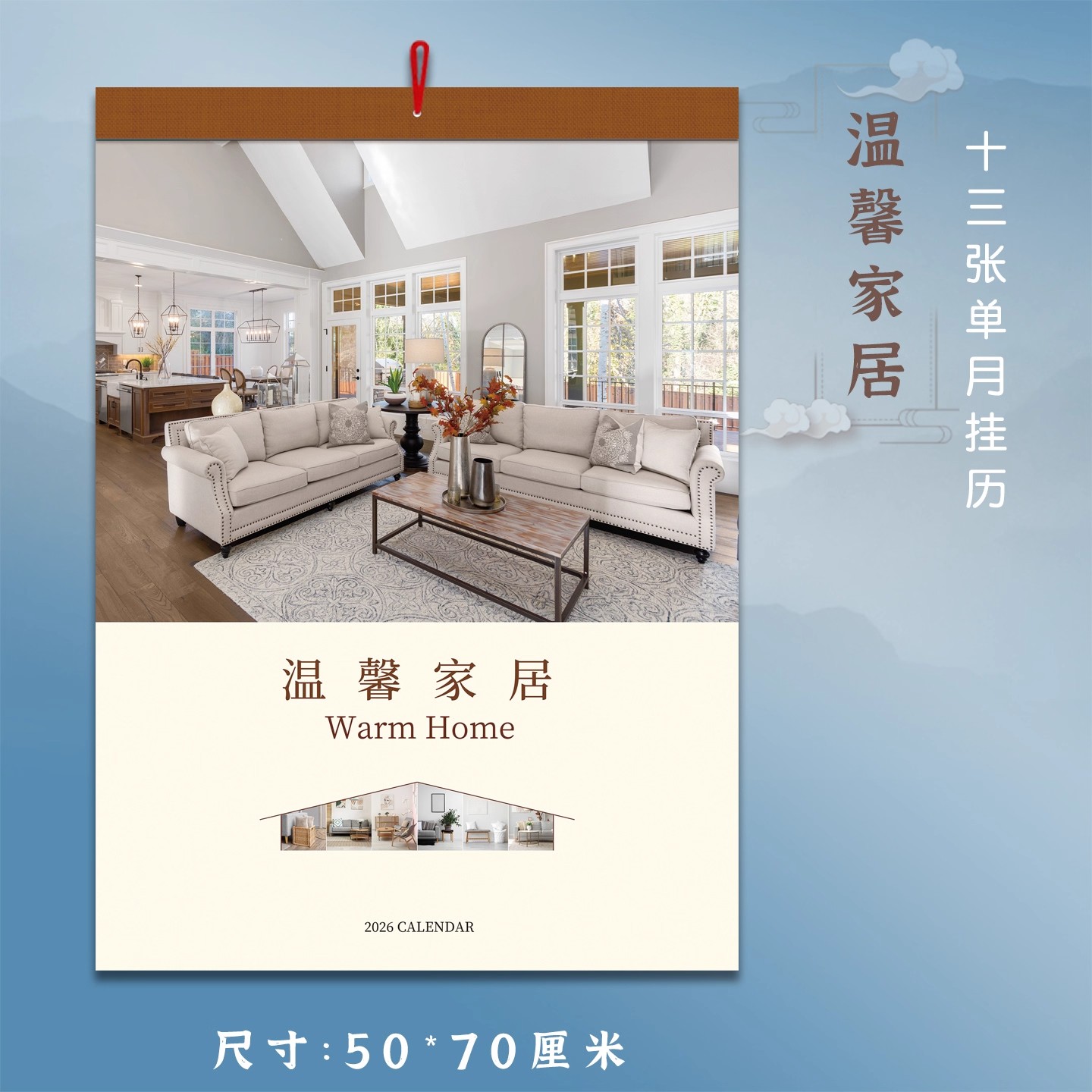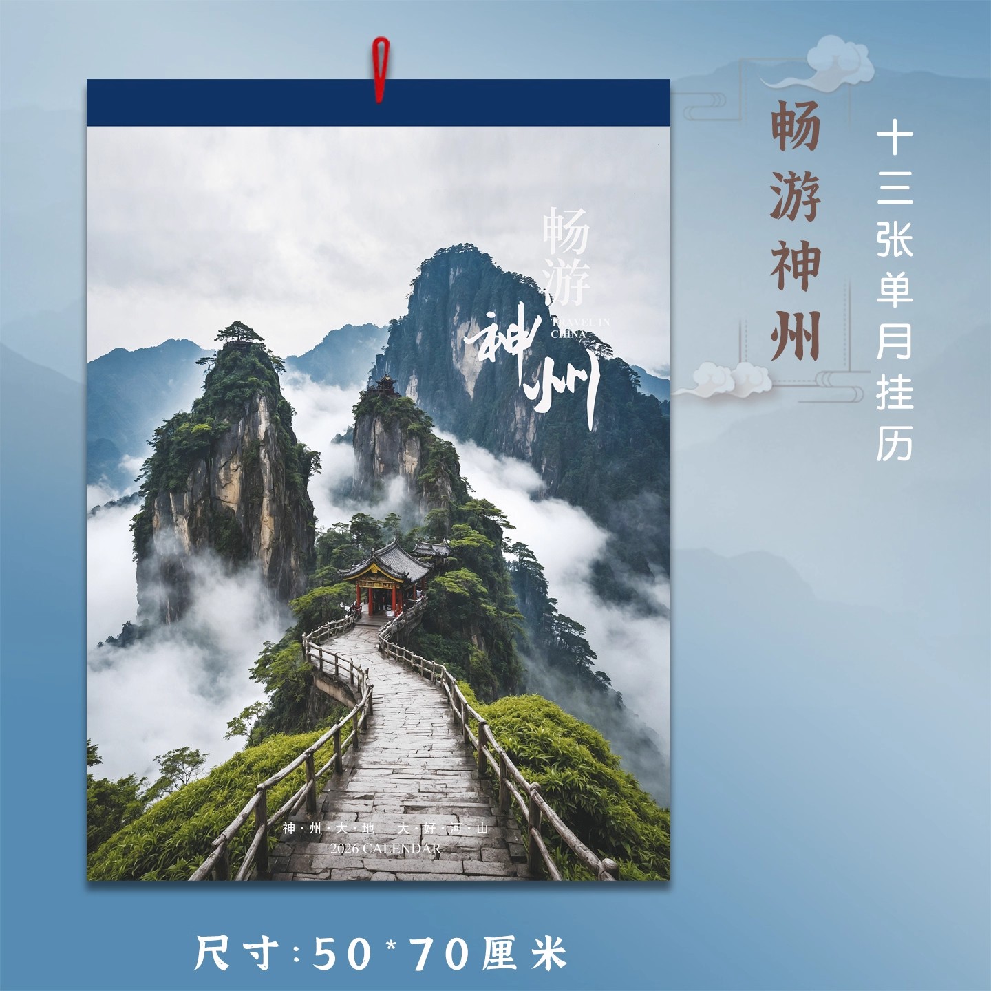 2026年日历新款马年一月一张挂历定制家用挂墙中国风山水风景国画月历大号日历公司礼品批发广告订做定制logo