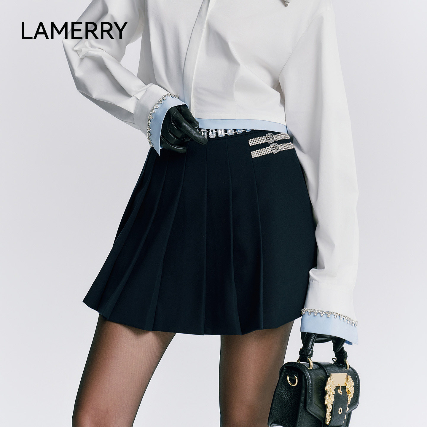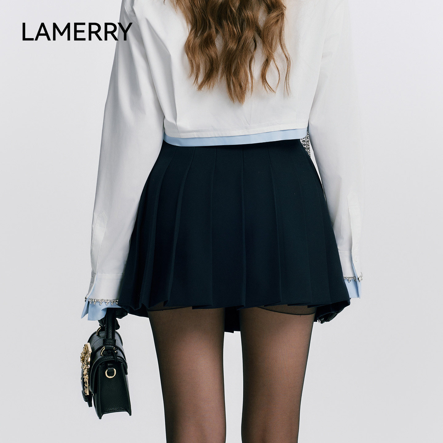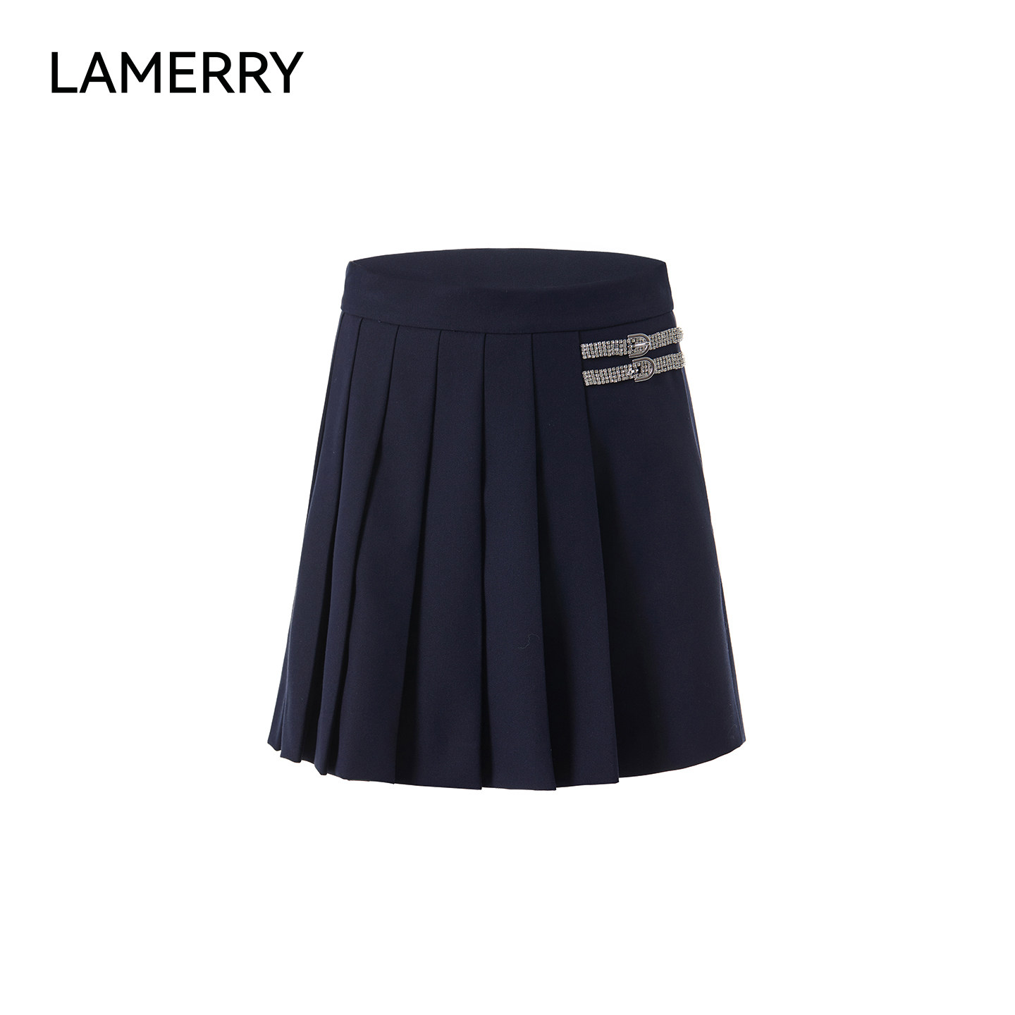 LAMERRY/朗美睿藏蓝色荷叶百褶牛仔半裙女减龄优雅25秋冬新款百搭