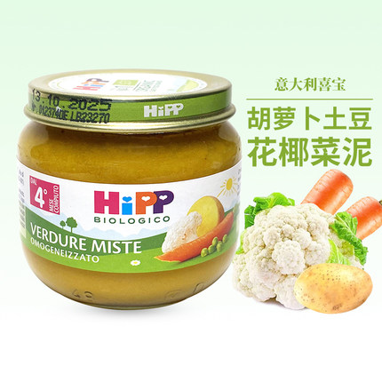 意大利版HIPP喜宝2段胡萝卜土豆花椰菜豌豆混合蔬菜泥辅食品80克
