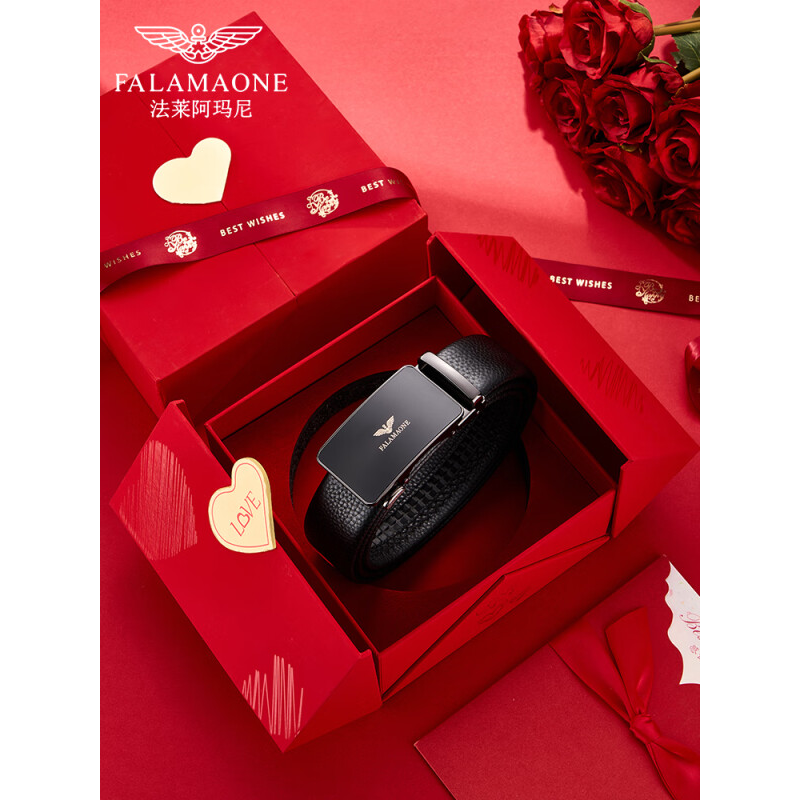 法莱阿玛尼皮带男士真皮情人节腰带商务头层牛皮青年裤带实用生日