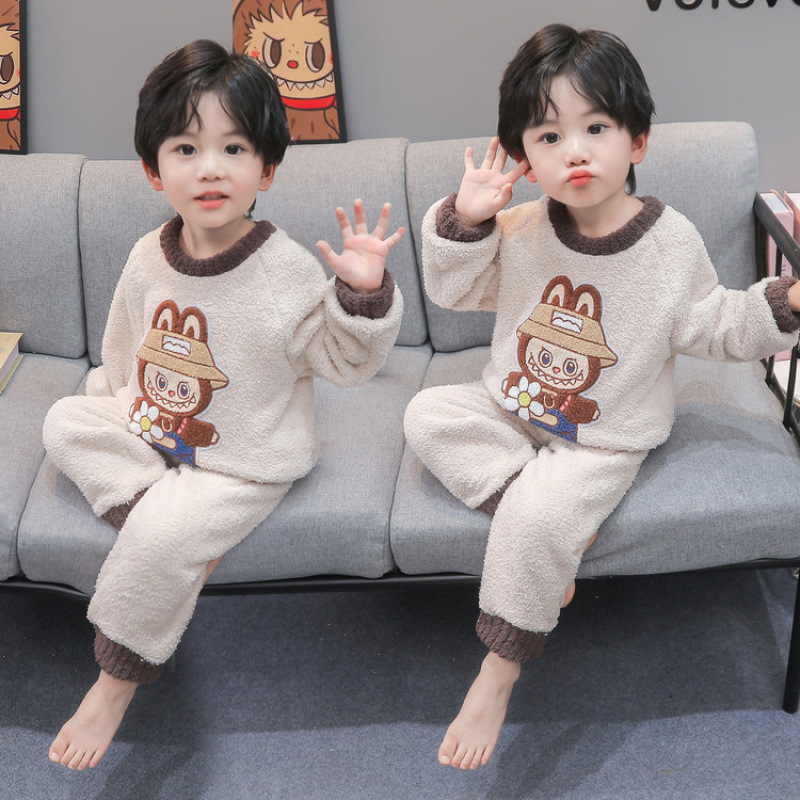 儿童睡衣秋冬季加厚珊瑚绒男童法兰绒加绒保暖家居服套装宝宝睡衣