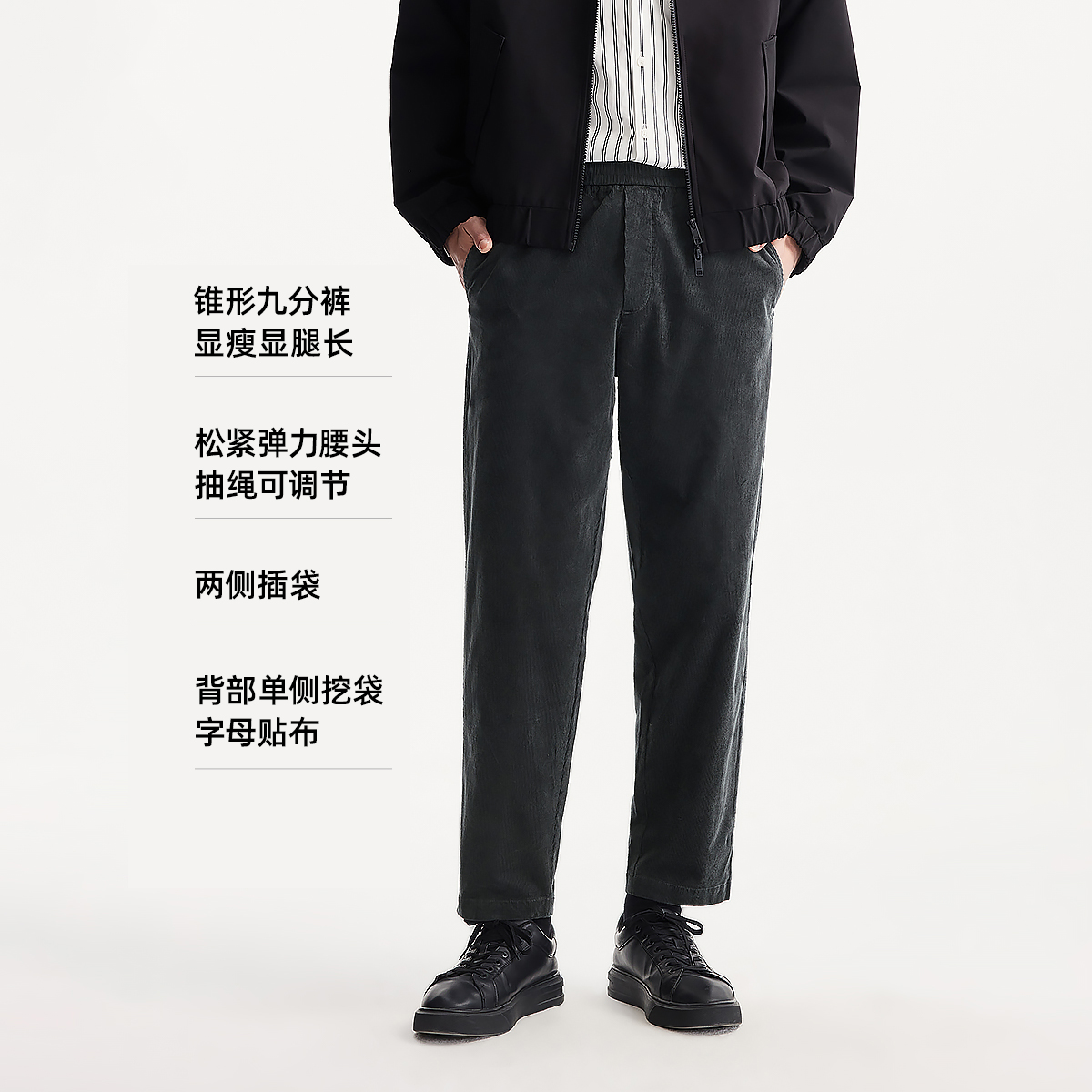 杰克琼斯冬男装灯芯绒锥形九分裤舒适百搭时尚潮流质感慵懒裤子