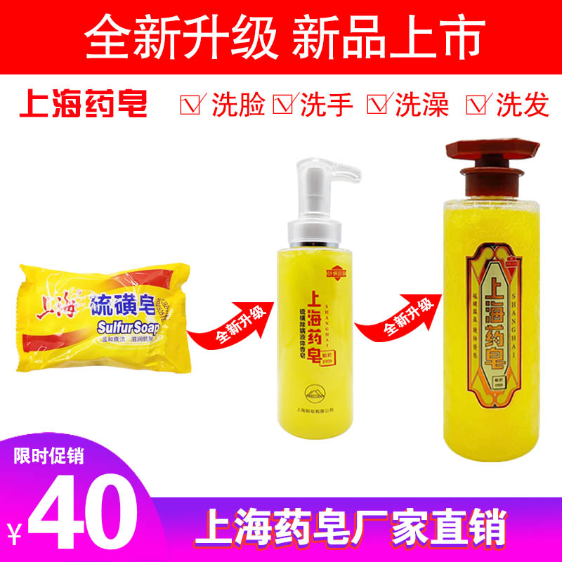 上海药皂流黄硫酸除螨痘痘沐浴露止痒洗头洗澡洗发水硫磺液体香皂