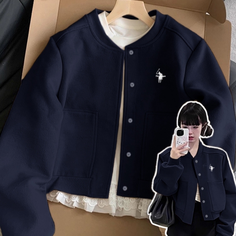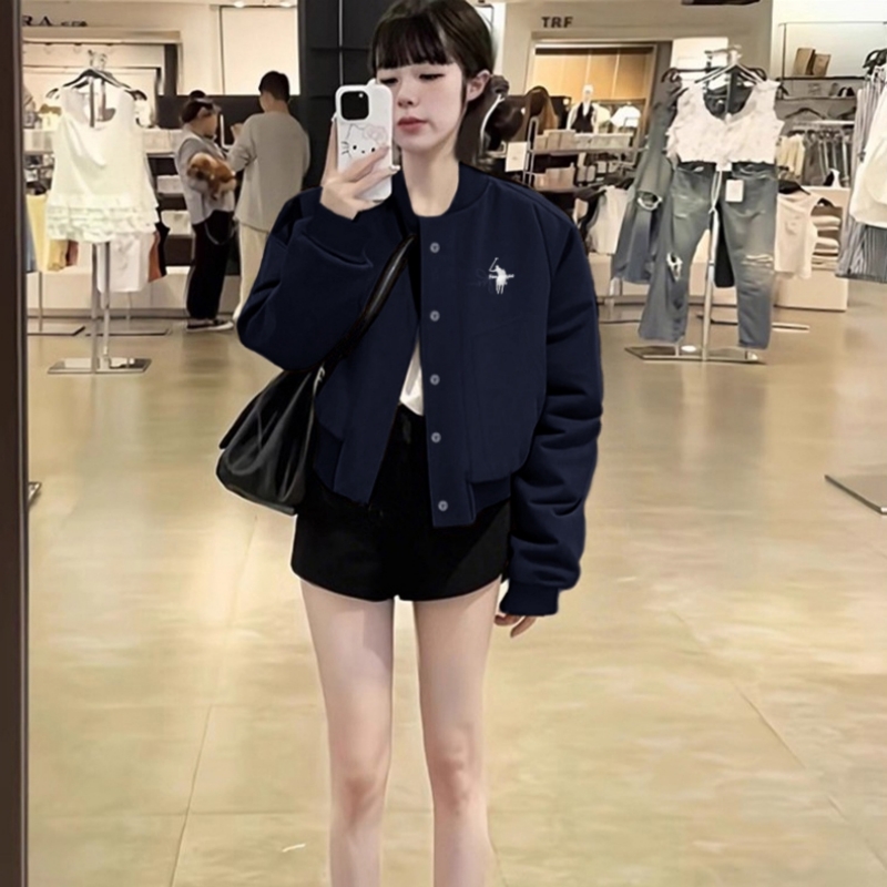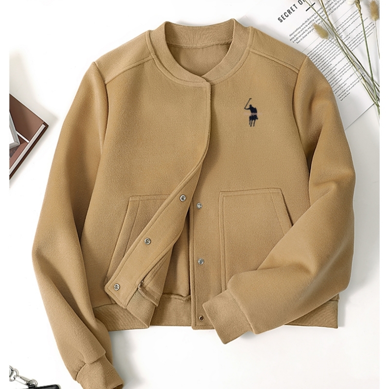 小马标刺绣卡其色短款外套女2025新款春秋韩系休闲宽松夹克棒球服