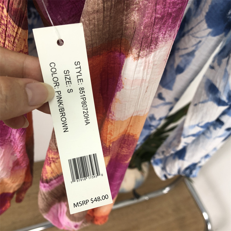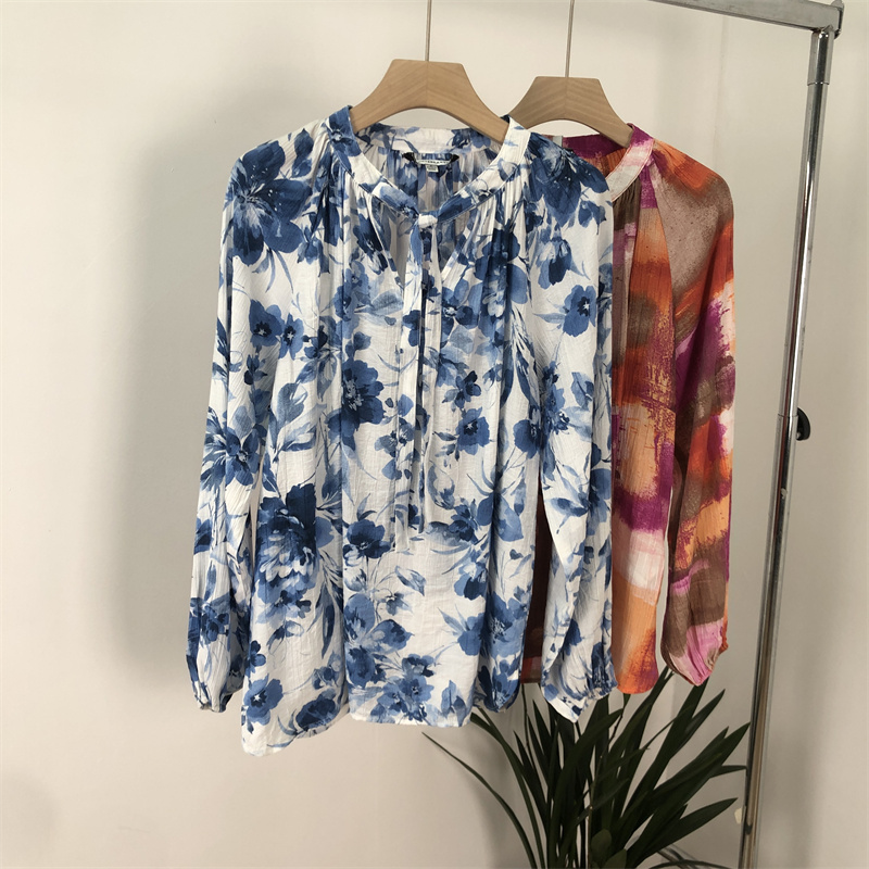外贸欧美捡漏!时尚印花纹系带领 肌理纹大码衬衫上衣