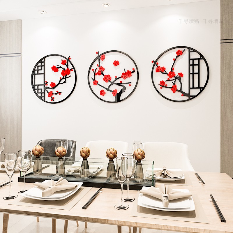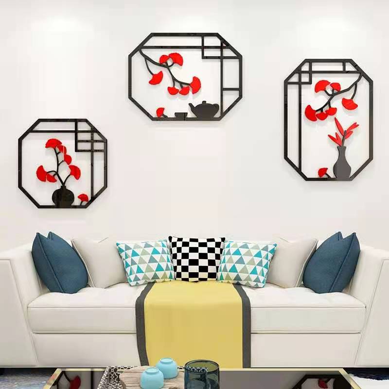 3d立体亚克力墙贴画创意新中式墙面装饰客厅玻璃门柜子简约背景贴