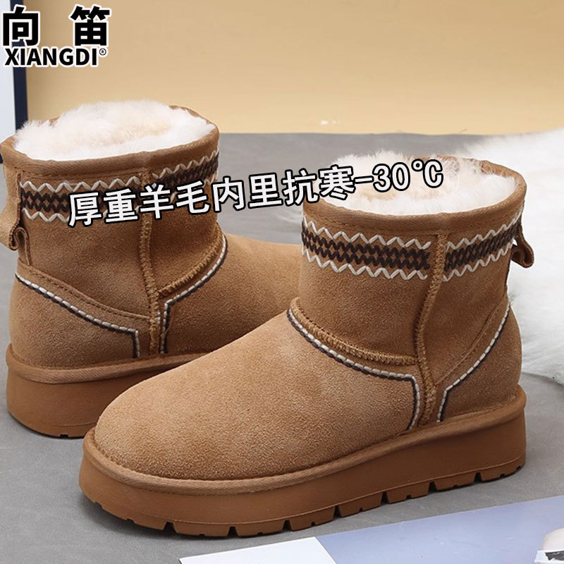 羊皮毛一体雪地靴女款厚底加绒加厚保暖防滑防水东北大棉鞋短靴子