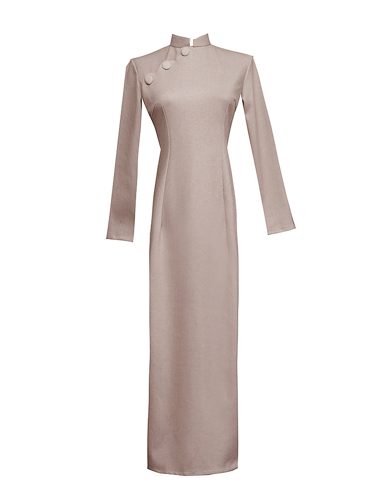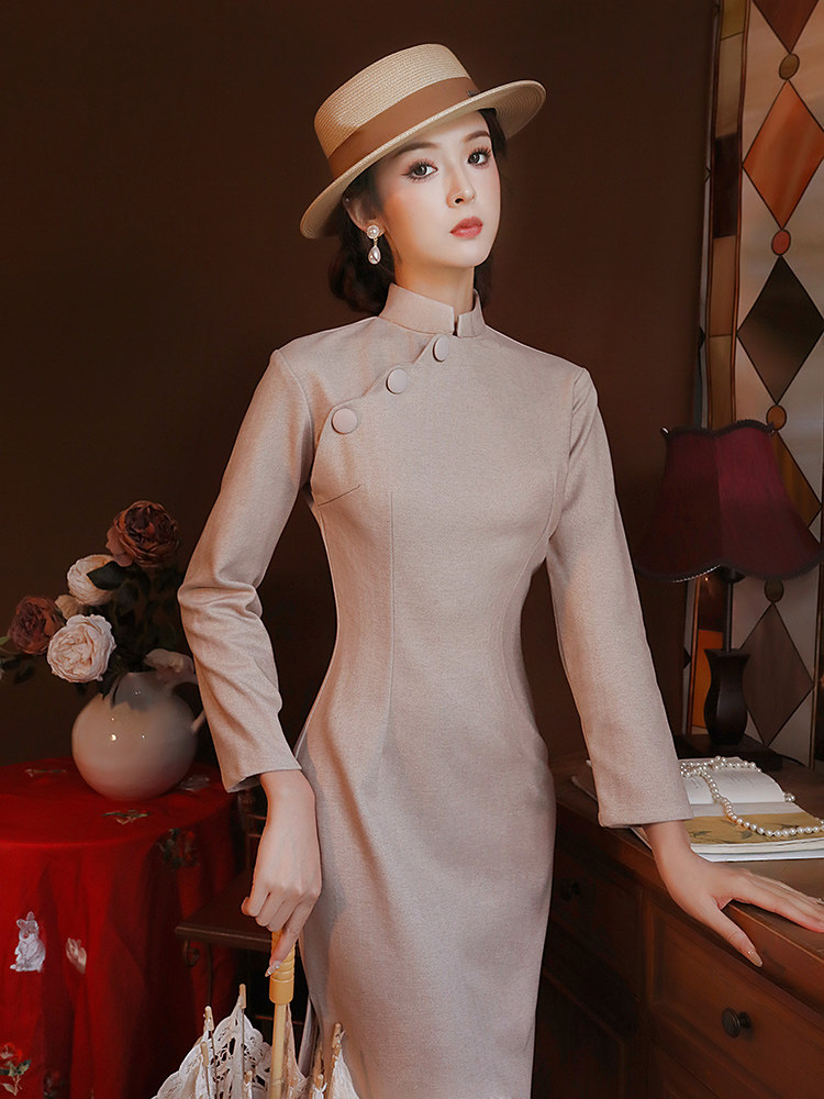 呢羊绒旗袍新款2023新款女秋冬改良复古民国风高贵气质长款连衣裙