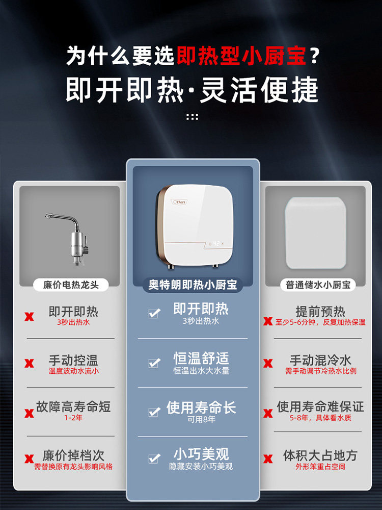 奥特朗即热式小厨宝速热水宝小型家用厨房卫生间电热水器台下S13H