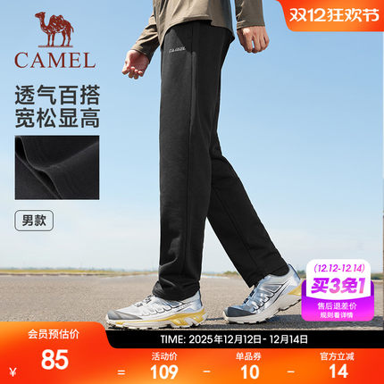 骆驼运动针织裤男士2025秋季薄款透气长裤束脚户外跑步休闲卫裤女