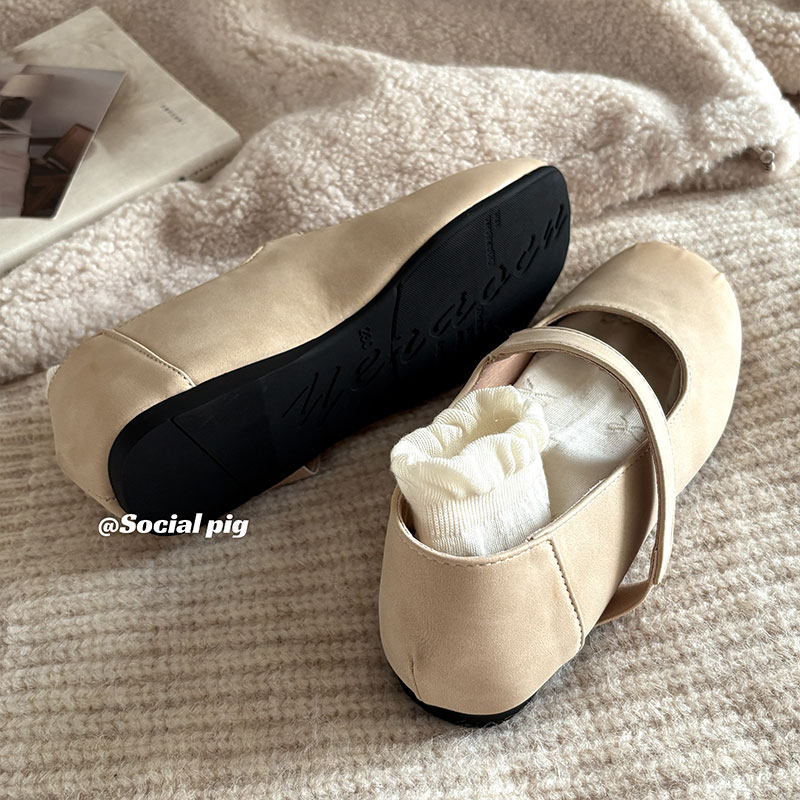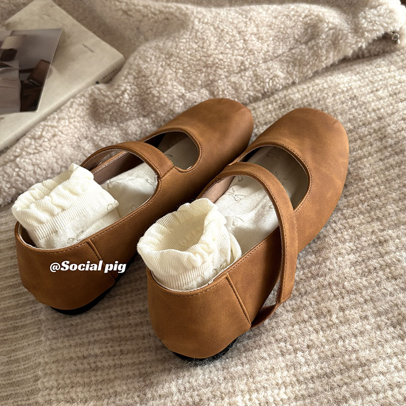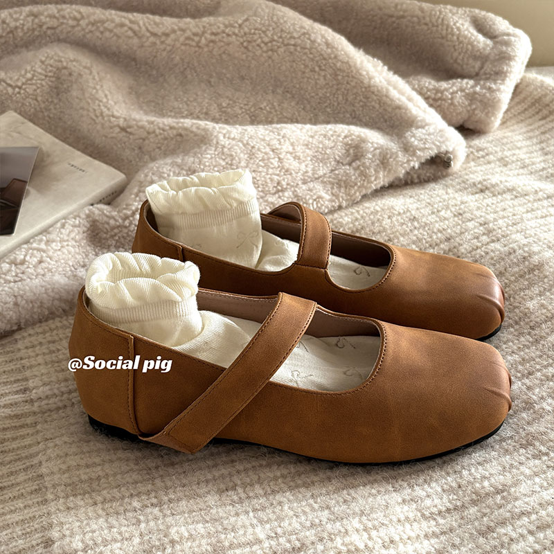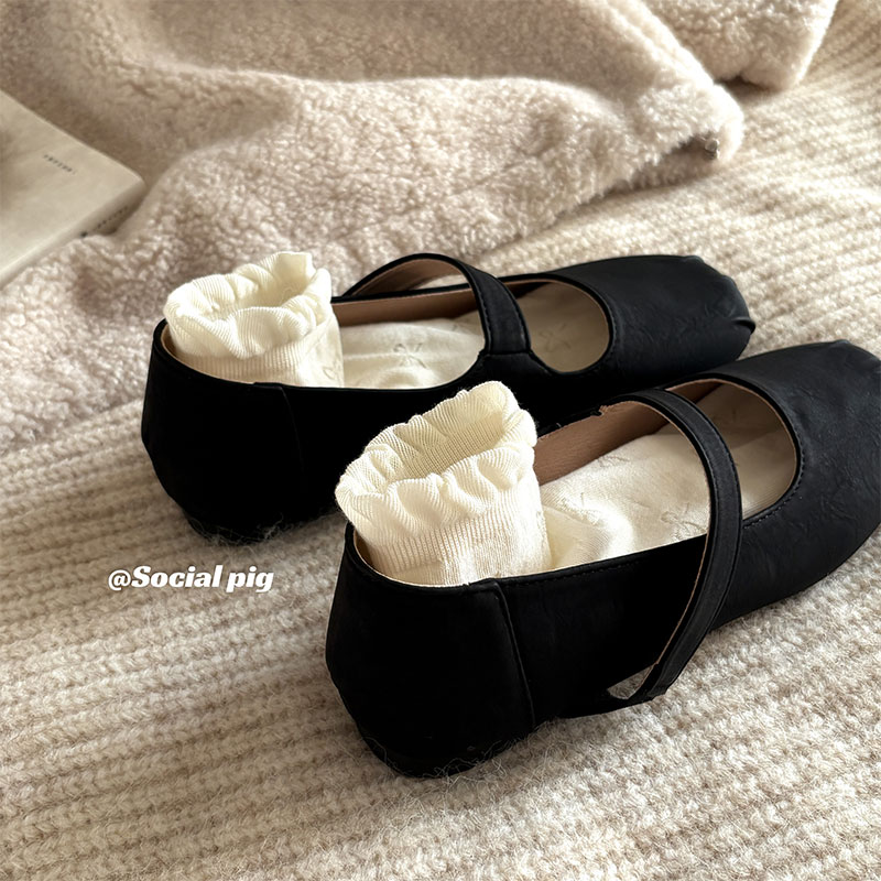 方头复古暗黑芭蕾舞鞋女外穿仙女平底单鞋2025新款一脚蹬玛丽珍鞋