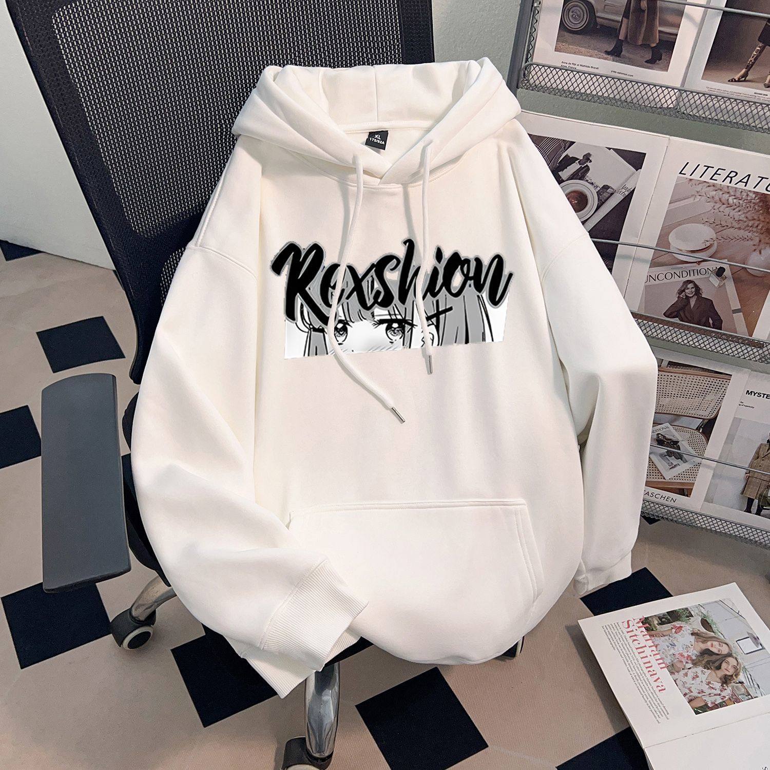 日系二次元印花oversize连帽卫衣男女童装秋冬加绒加厚款上衣卫衣