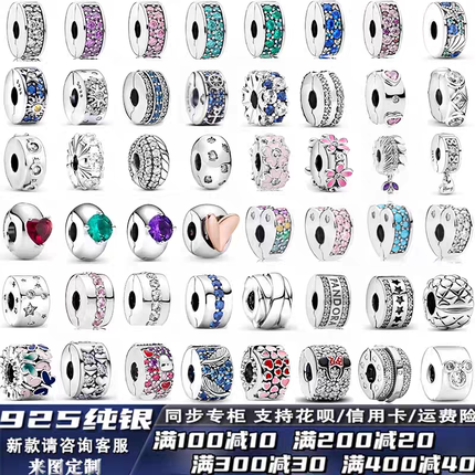 潘家固定扣s925纯银镶钻珠子手链定位夹扣串珠diy散珠饰品配件