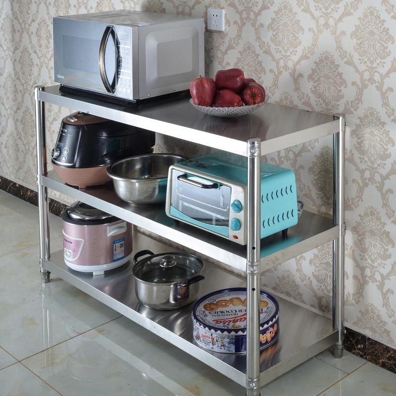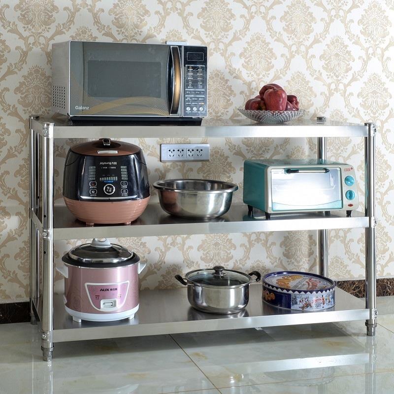 不锈钢厨房置物架多层微波炉架子收纳架储物锅架三层烤箱货架菜架