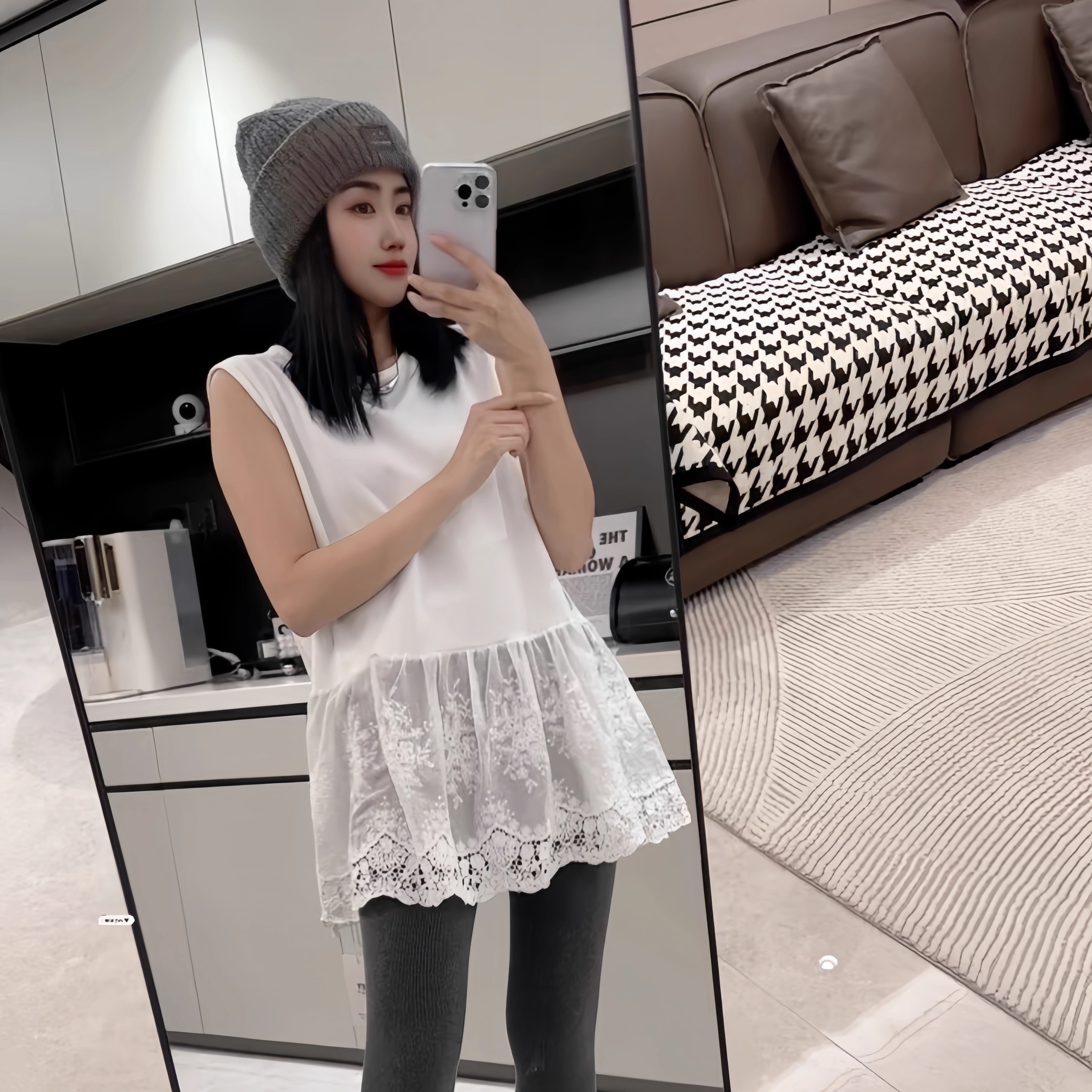 拼接蕾丝边下摆叠穿打底衫女2025秋冬款宽松休闲内搭无袖T恤背心