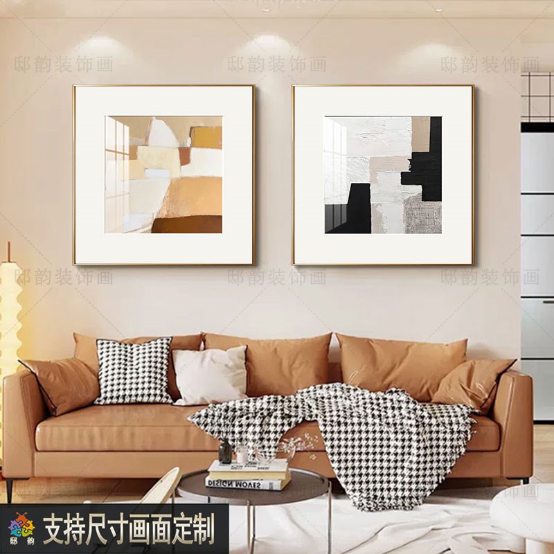 现代抽象正方形装饰画样板间卧室床头晶瓷画民宿酒店餐厅软装挂画