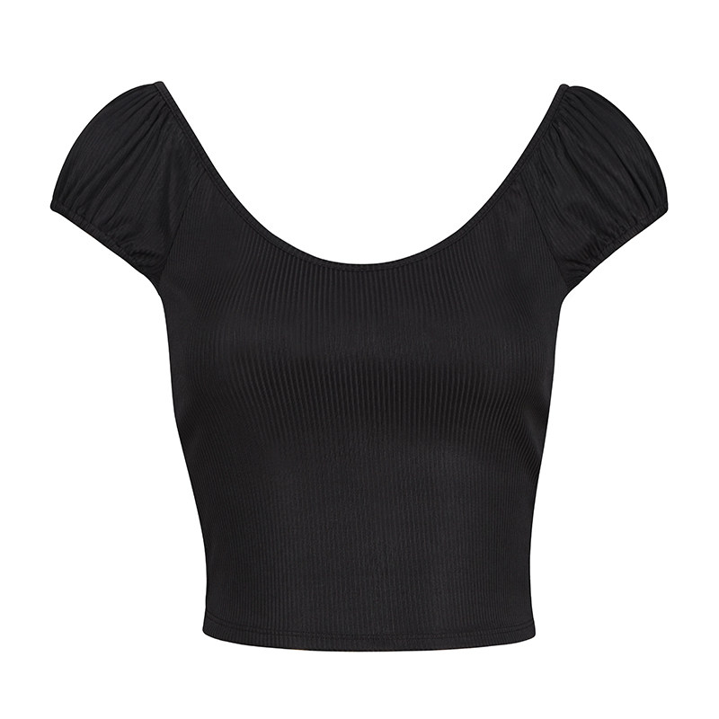 ITSNIKAR 泡泡袖露背绑带短袖T恤女夏性感修身设计感短款辣妹上衣