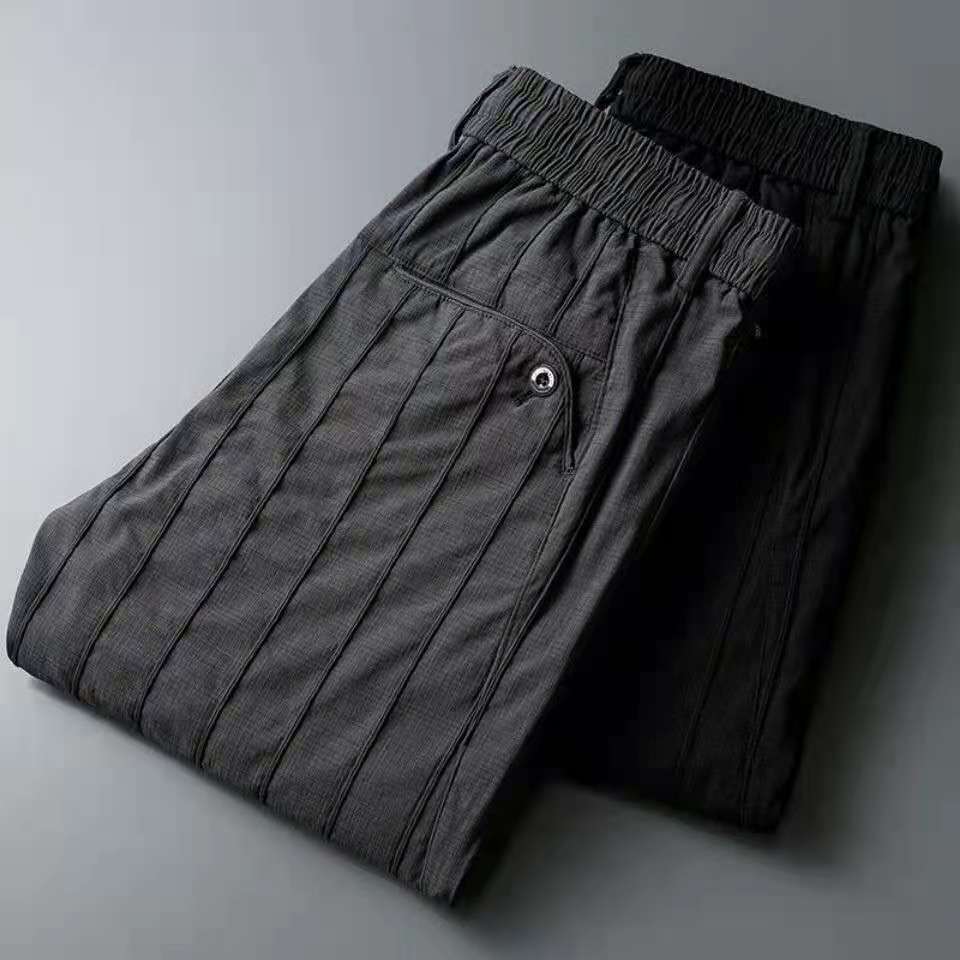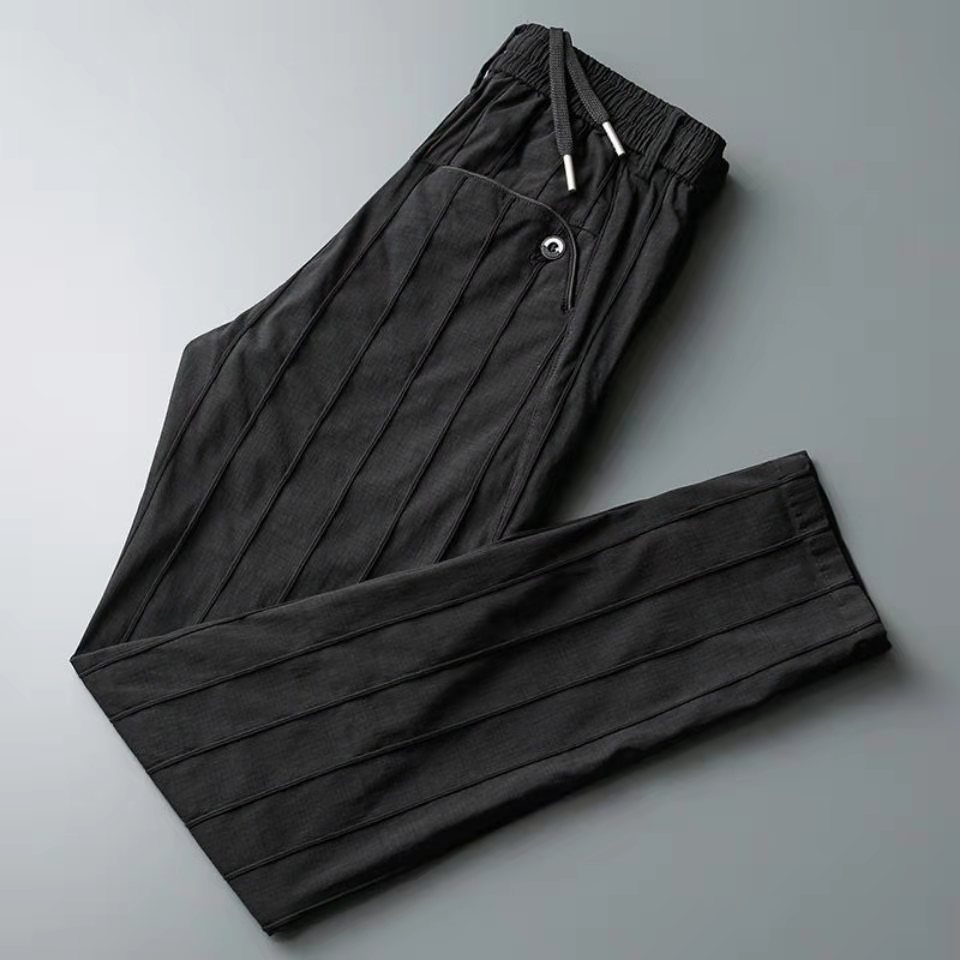 2025秋季新款男条纹休闲裤男弹力松紧抽绳九分裤潮流百搭小西裤男