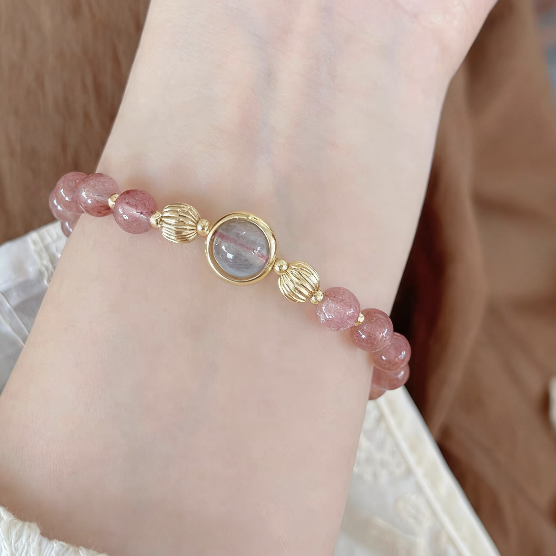 澜玥天然草莓水晶手串新中式设计感招桃花月光石粉色手链女款首饰
