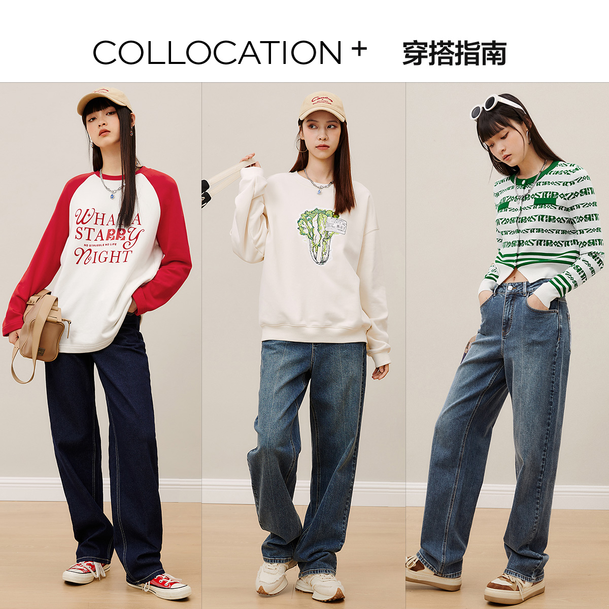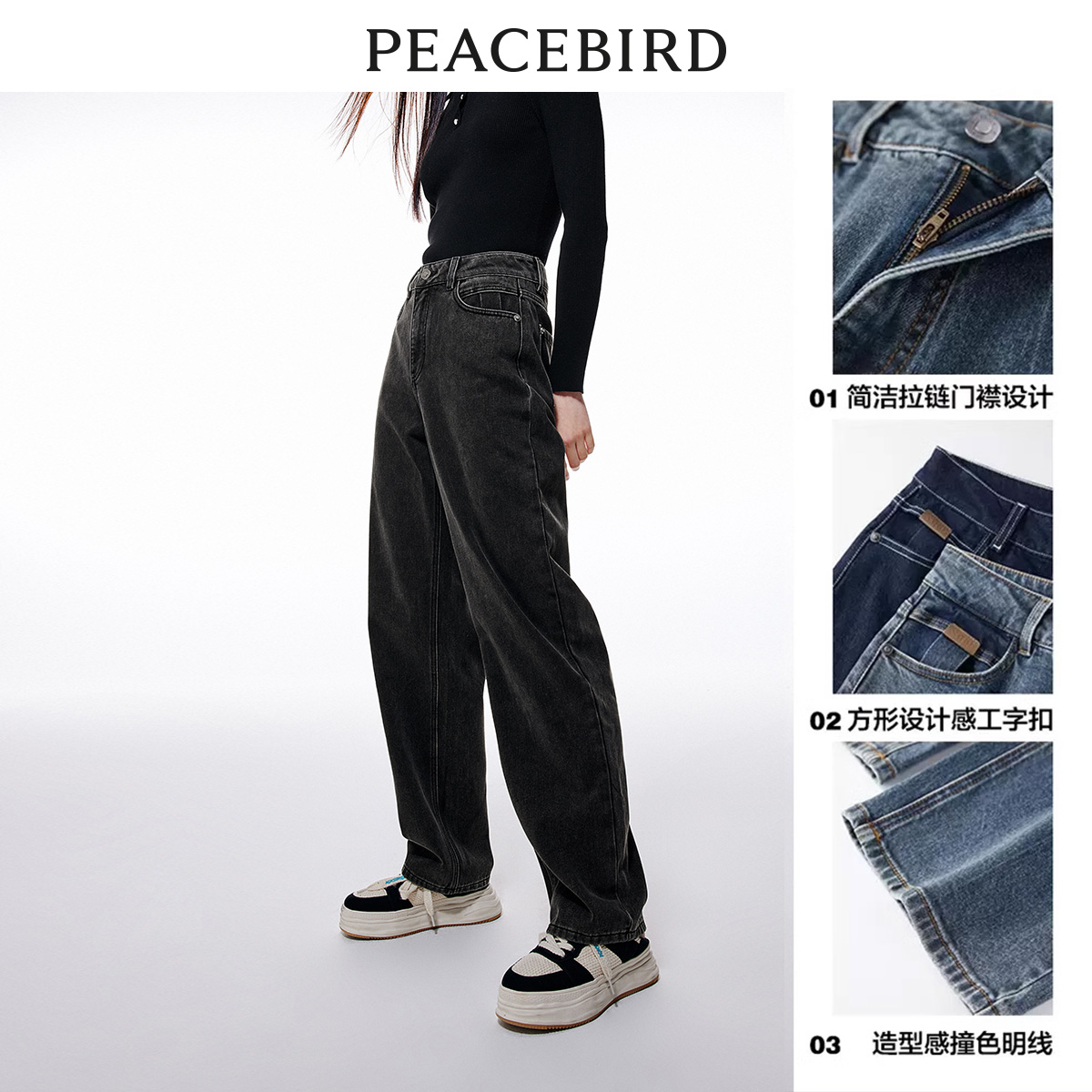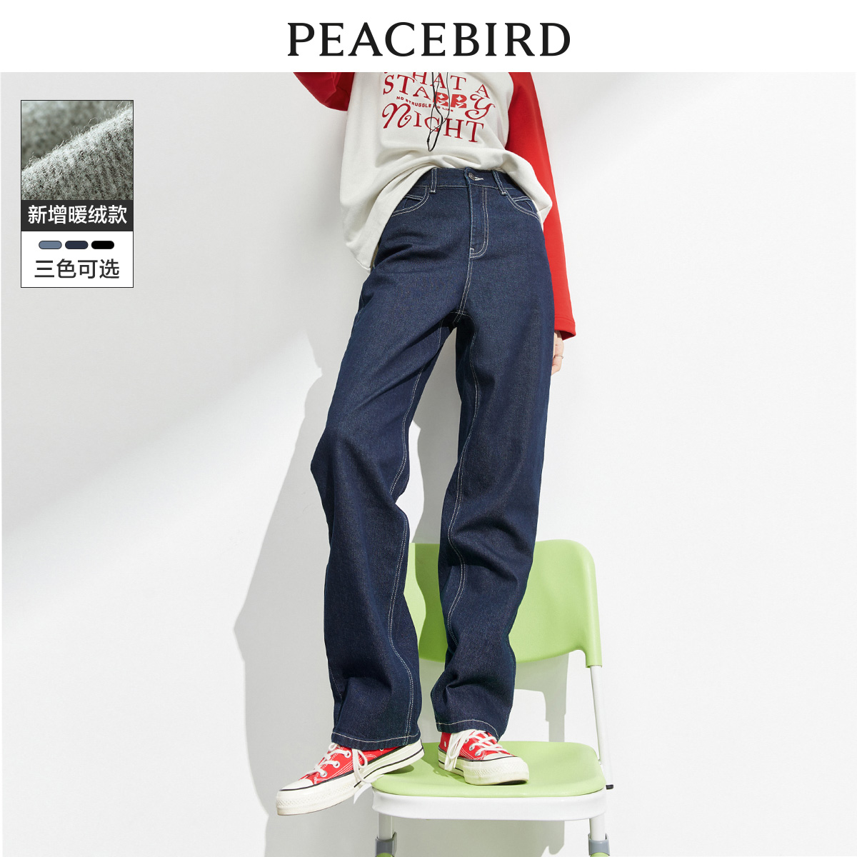 太平鸟复古高腰阔腿牛仔裤秋冬宽松休闲潮流直筒裤子女奥莱