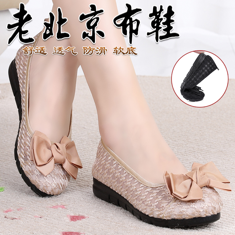 老北京布鞋女网鞋夏季网面豆豆鞋中年凉鞋女软底平跟酒店鞋工作鞋