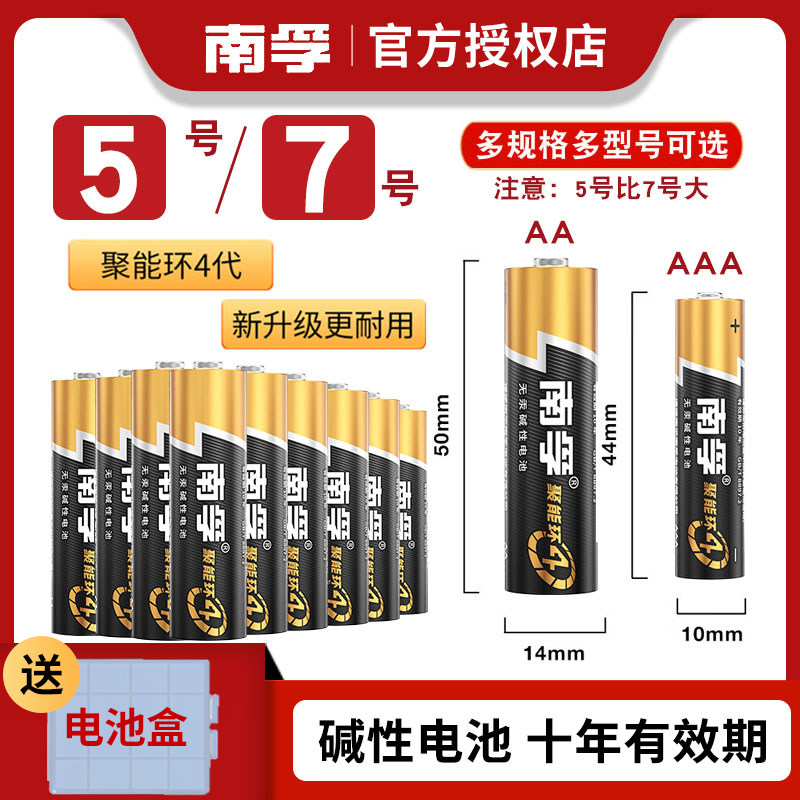 60粒南孚5号电池五号碱性聚能环AA七号7号AAA电池1.5v干电池空调遥控器正品批发家用玩具门锁体温计电池