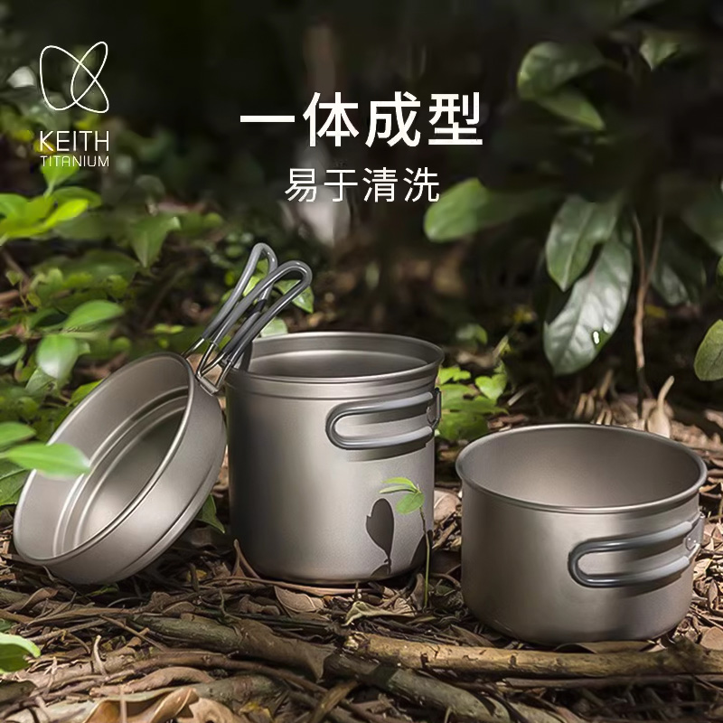 KEITH铠斯2-3人纯钛套锅户外钛锅饭盒钛餐具露营野营炊具