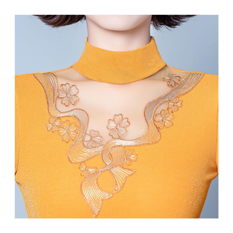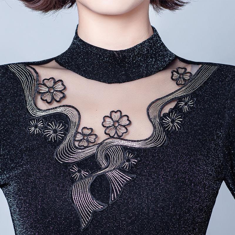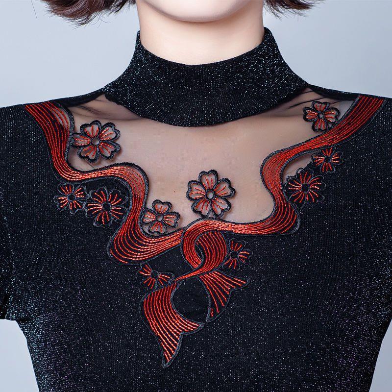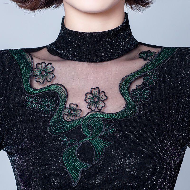 秋冬新款蕾丝保暖内衣女半高领显瘦加绒加厚上衣网纱妈妈装打底衫