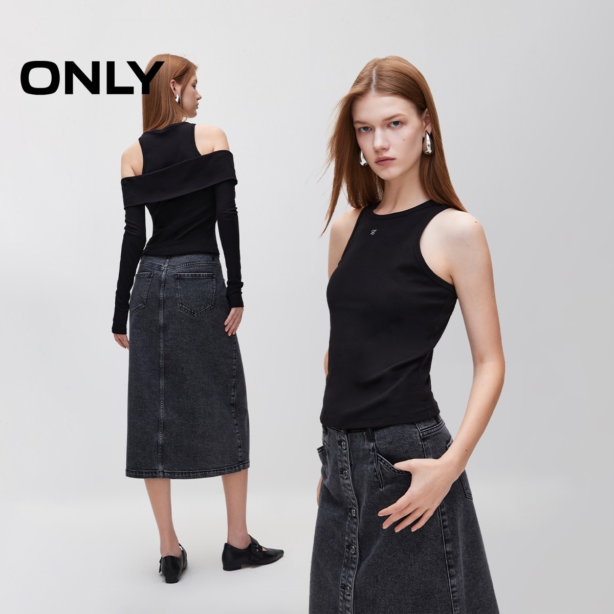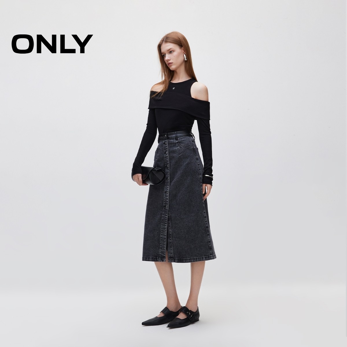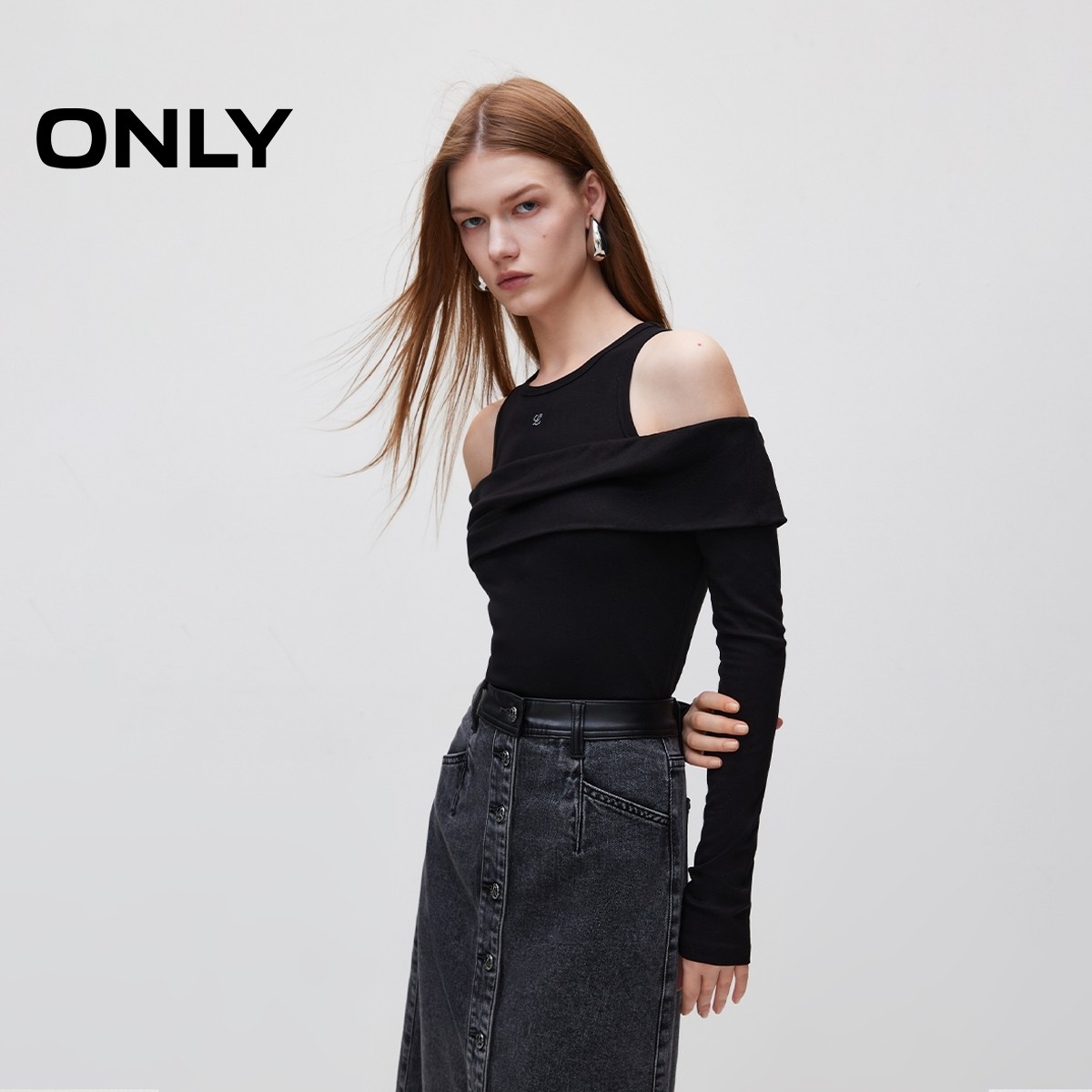 绫致ONLY春夏新时尚露肩一字领套装短款长袖T恤女百搭潮