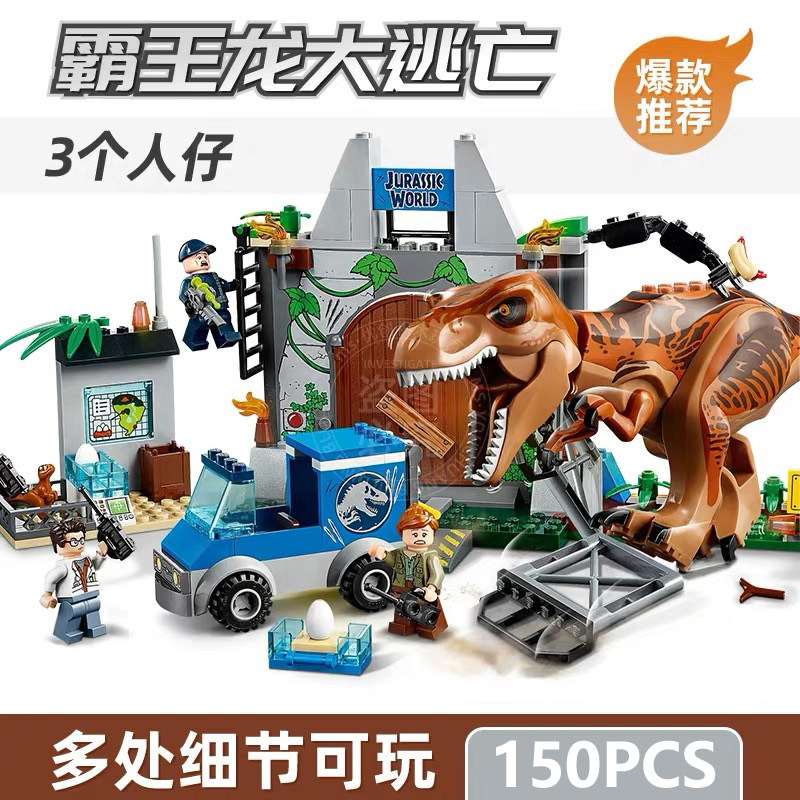 霸王龙大逃亡侏罗纪恐龙积木玩具